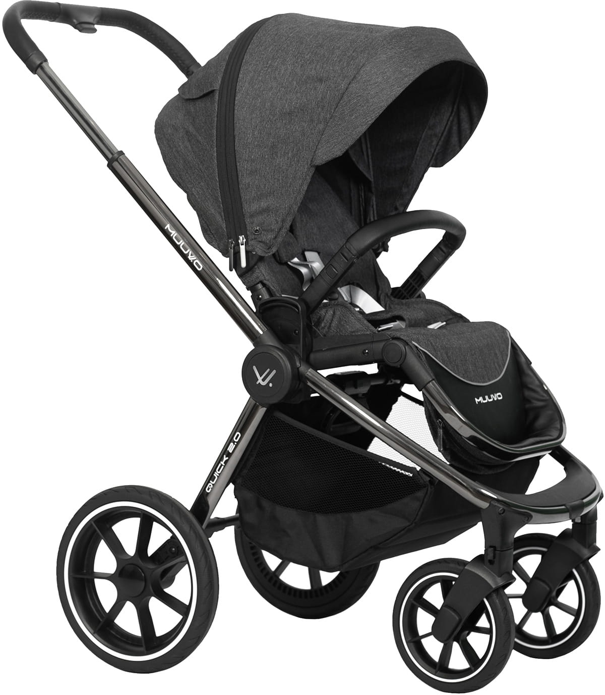 Прогулочная коляска MUUVO Quick 2.0 Chrome - была разработана с вниманием к мельчайшим деталям. Инновационный дизайн i,качество используемых материалов гарантирует удобство использования. Маневренная коляска Quick 2.0 с улучшенной амортизацией справится с любой местностью. Для нас также важен комфорт родителей, поэтому Quick 2.0 легкий - он весит чуть более 10 кг. Его легко сложить одной рукой, а удобная ручка позволят вам носите его как сумку. Muuvo Quick 2.0 - это коляска, созданная для родителей, которые ценят надежность и внимание к деталям. Каждый элемент коляски призван облегчить прогулку каждой мамы или папы.