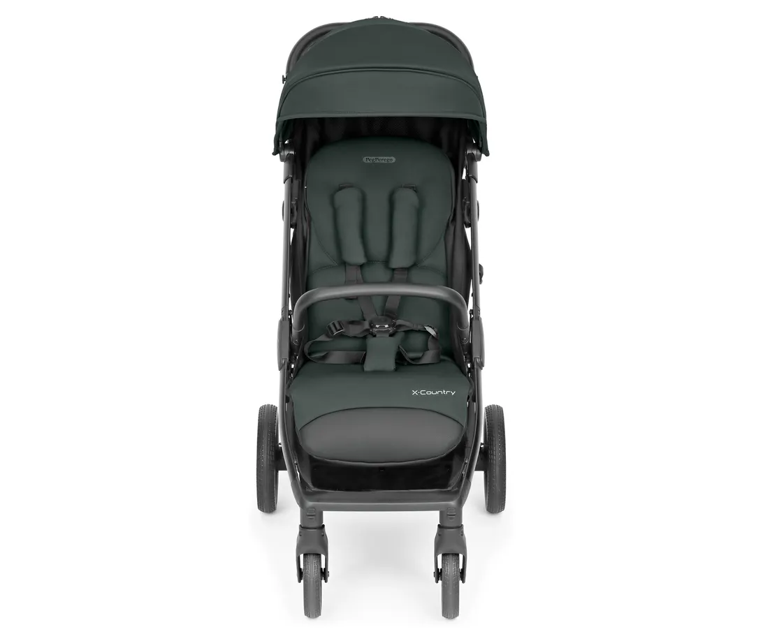 Прогулочная коляска Peg Perego X-COUNTRY - легко преодолевает любую местность благодаря большим резиновым колесам с протектором, шариковым подшипникам и амортизации. Разработанный, чтобы сопровождать вас повсюду, от грунтовых дорог до городских улиц, он весит 9,4 кг и одобрен для использования с рождения до 22 кг.