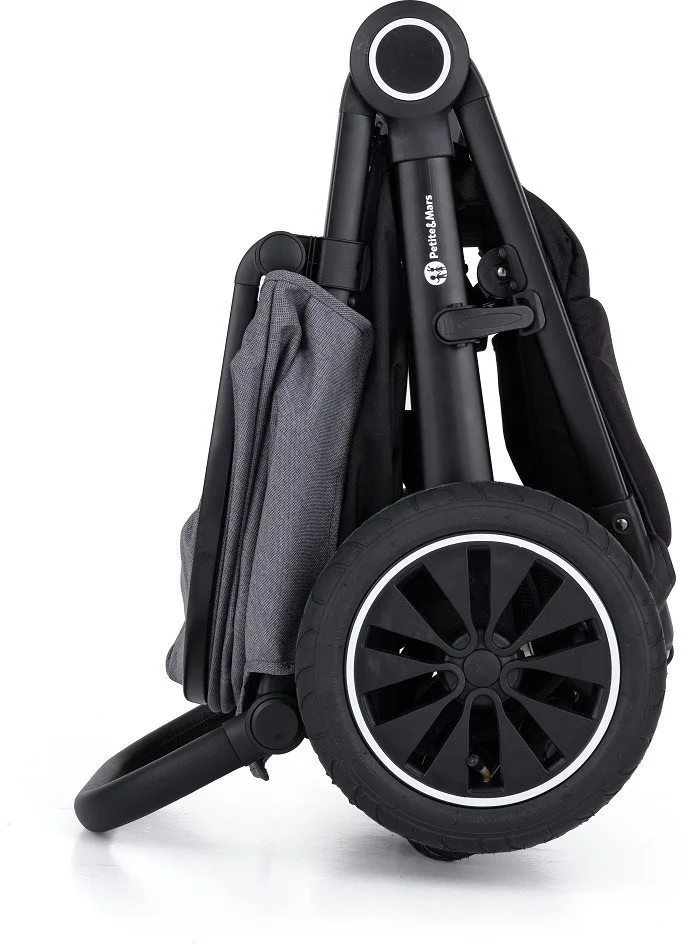 Прогулочная коляска Petite and Mars Street+ AIR Black 100 - это предложение от бренда Petite&Mars - коляска, предназначенная для детей в возрасте от 6 месяцев до 25 кг веса. Коляска отличается легкостью и маневренностью, благодаря чему мы можем свободно прогуливаться по городской местности, но не только – прочные колеса и полная подвеска коляски обеспечивают стабильную езду независимо от типа поверхности. Капюшон доступен во многих цветовых вариантах и может быть приобретен как аксессуар, поэтому каждый из родителей может найти решение, удовлетворяющее его собственный вкус. Street+ – идеальный вариант для тех, кто любит долгие прогулки и хочет выделиться из толпы. Версия Air отличается наличием надувных колес.