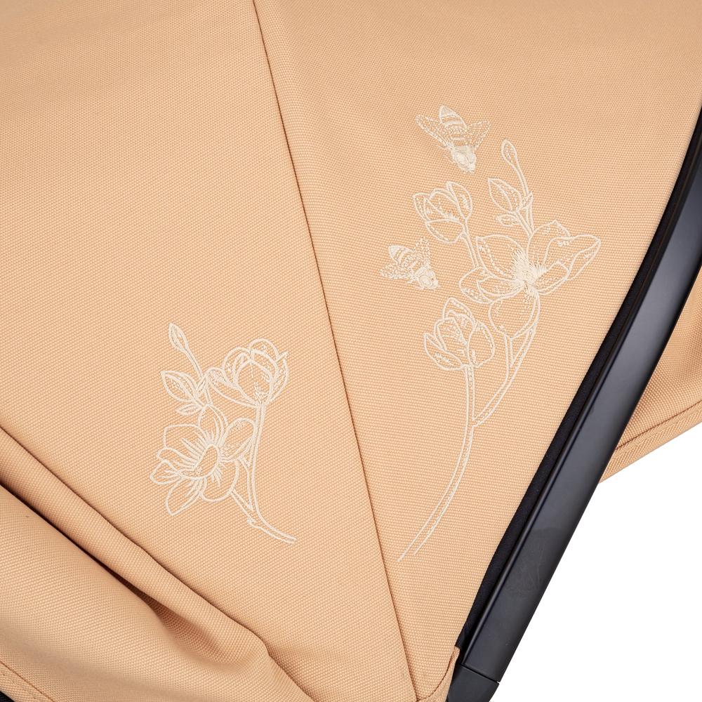 - Спинка коляски неймовірно плавно регулюється і в максимальному положенні забезпечує зручне спальне місце. Коли спинка розкладена, малюк може насолоджуватися додатковою вентиляцією завдяки вентиляційній панелі в задній частині спинки.