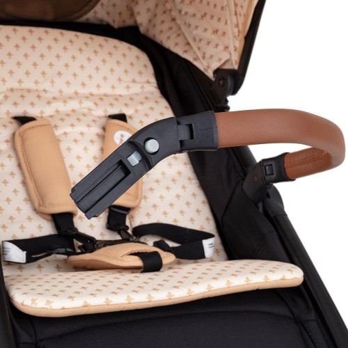 - Регульована по висоті ручка, що дозволяє підлаштувати її під зріст батьків або іншого члена сім'ї. Коляска, пристосована до наших потреб, є гарантією комфорту, особливо під час тривалих прогулянок. Ручка має обробку з еко-шкіри.