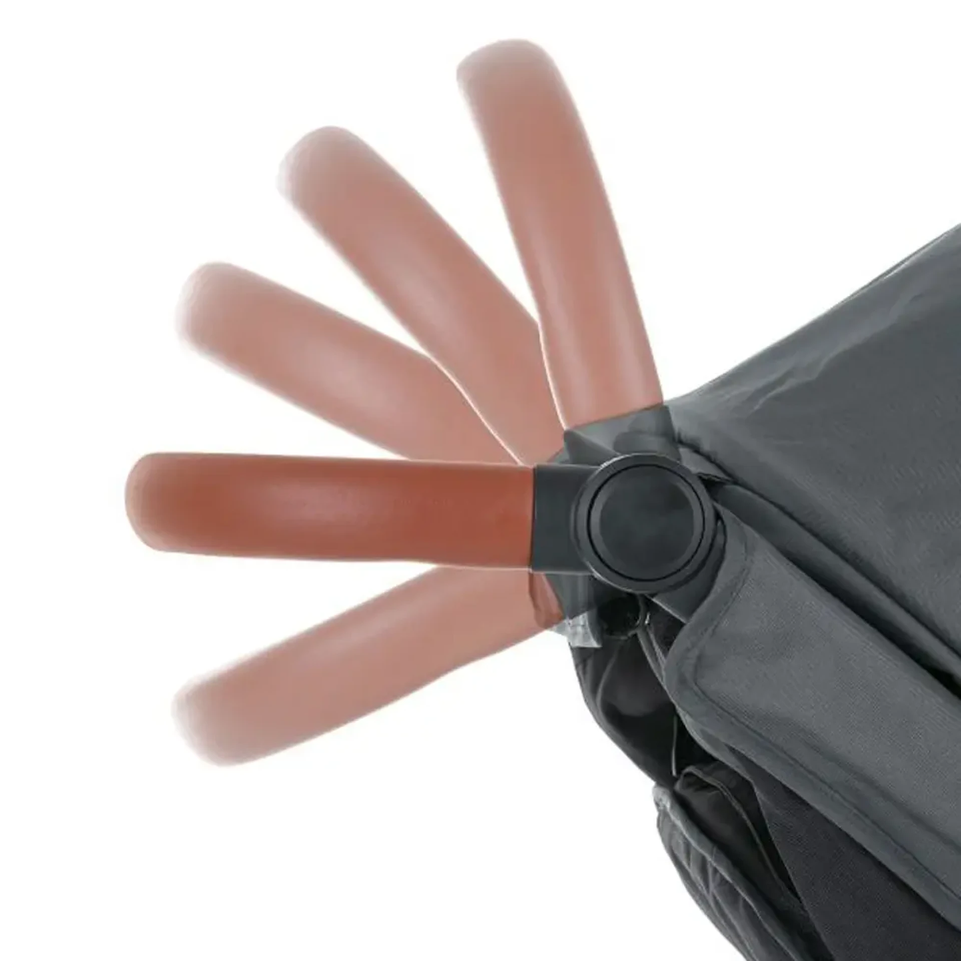 - Регулируемая по высоте ручка, позволяющая подстроить ее под рост родителей или другого члена семьи. Коляска, приспособленная к нашим потребностям, гарантирует комфорт, особенно во время длительных прогулок. Ручка имеет отделку из эко-кожи.