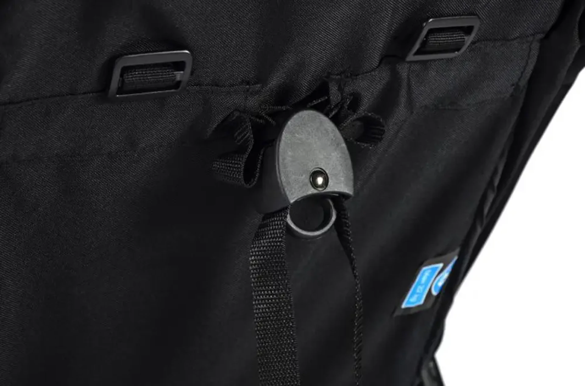 - Капюшон имеет обзорное окно, благодаря которому ничто не мешает постоянному контакту между родителями и ребенком.