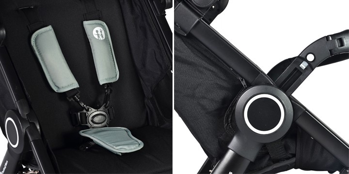 - 5-точечные ремни безопасности защищают ребенка от выпадения из коляски, а высокое и глубокое сиденье обеспечивает ребенку достаточно места, даже если он выше своих сверстников. Коляска оснащена ремнем безопасности, что облегчает посадку наиболее нетерпеливого пассажира.
