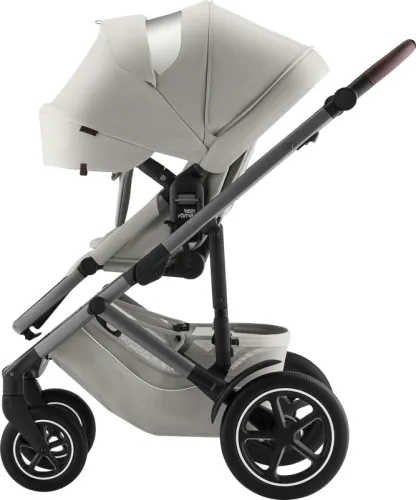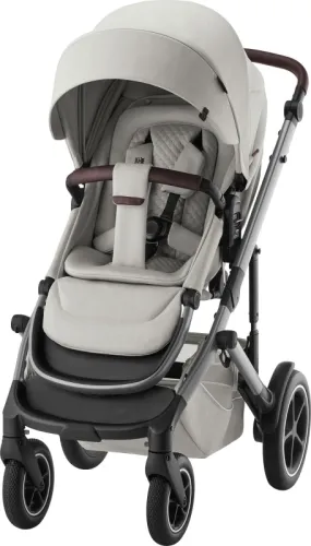- Коляска имеет структуру, основанную на системе, позволяющей крепить люльку и автокресло. Благодаря этому коляску Britax Romer Smile 5Z можно использовать разнообразно, для скорых поездок по городу и длительных прогулок, для детей от рождения до 4 лет.