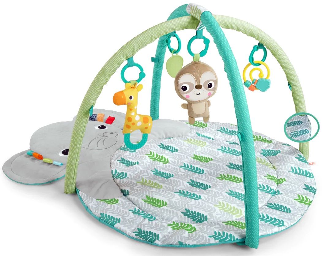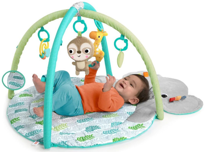 Развивающий коврик BRIGHT STARTS Hug'n Cuddle – создает самое комфортное пространство для отдыха на животике или отдыхе. В любом игровом положении ваш малыш будет весело трясти, бряцать и сжимать 5 игрушек, которые можно взять с собой, как и наш новейший и волшебный персонаж – ленивец! Увлекайте ребенка веселыми занятиями во время пребывания в животике, например наши увлекательные атласные бирючки или зеркальце для подглядывания. Когда ребенок станет больше, вы можете снять игрушечную планку и превратить слона в мягкий игровой коврик и мягкого, достойного объятия друга. Этот роскошный тренажерный зал обеспечит вам и ребенку много места, чтобы приютиться на долгие годы.