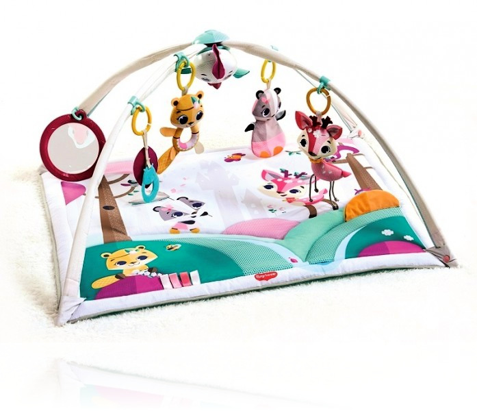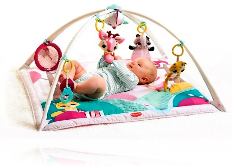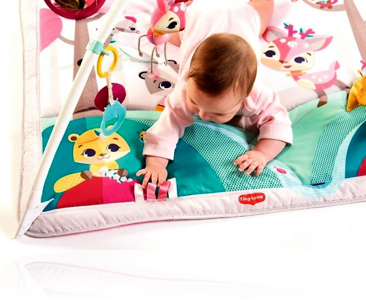 Развивающий коврик Tiny Love Мир Маленькой Принцессы - это идеальный коврик для игр, с которым Ваш ребенок будет не просто лежать на животике или спинке, а сможет развивать чувства цветовосприятия, тактильные ощущения, научится узнавать себя в зеркальце, также он сможет погрызть подвесные прорезыватели и уменьшить боль во время появления первых зубиков. Дуга с игрушками обеспечит более интересные игры.