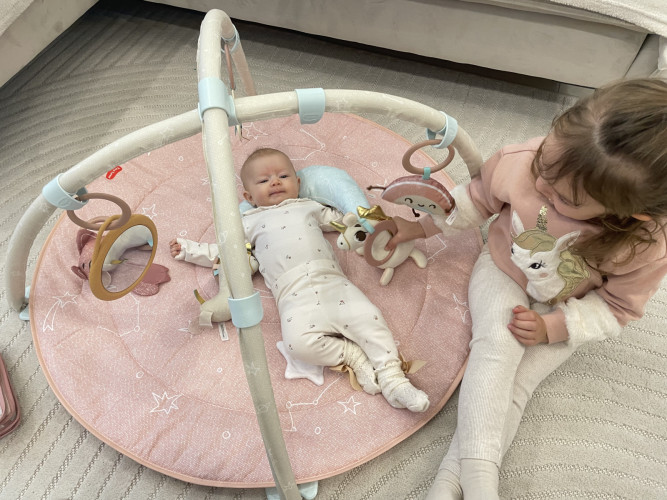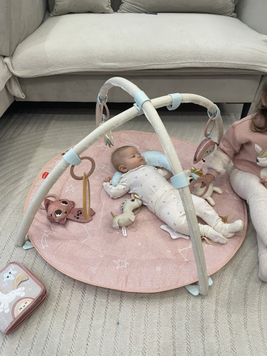 Развивающий коврик Tiny Love Страна Единорога - это волшебное путешествие в сказочный мир, которое превратит комнату вашего малыша в полную чудес страну фантазий. Украшенная волшебными мотивами единорогов и мерцающими звездами, эта уникальная коллекция была создана в сотрудничестве с экспертами по детскому развитию, чтобы поддерживать детей на каждом этапе их роста. Благодаря мягкой цветовой палитре и блестящим акцентам «Страна единорогов» создает атмосферу, полную невинности и радости, стимулируя воображение вашего ребенка и поощряя его исследовать новые и увлекательные миры. Мерцайте и исследуйте! Детский развивающий коврик «Страна единорогов» имеет уникальный дизайн, который помогает адаптироваться к меняющимся потребностям и способностям ребенка. Вы можете разместить игрушки в пределах досягаемости ребенка, чтобы стимулировать и поддерживать развитие зрительно-двигательной координации и навыков хватания, что помогает развивать когнитивные способности ребенка. Уникальное раздвижное соединение дуг означает, что теперь вы можете адаптировать их расположение к потребностям развития вашего ребенка. Ваш малыш сможет лежать на животике, держать игрушки всегда под рукой и даже играть с вами на коврике! Содержит множество волшебных игрушек для стимулирования развития малыша, безопасное зеркальце, а также световые и игровые элементы раздвижного кольца для легкого перемещения игрушек на дугах.