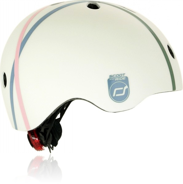 Защитный шлем Scoot and Ride для 1-5 лет XXS-S - замечательный и стильный шлем, который будет защищать вашего ребенка от травм. Большим плюсом данной модели является то, что Вы сможете пользоваться им 4 года. Боковые ремешки позволяют регулировать шлем ребенка. Внутренняя часть заполнена амортизирующим вкладышем EPS, а в оболочке есть 11 вентиляционных отверстий с москитной сеткой, гарантирует превосходную циркуляцию воздуха и предотвращает потоотделение головы. На задней части, при регулировании окружности головы, шлем оборудован красной светодиодной лампой с тремя режимами освещения (непрерывное и два мигания).
