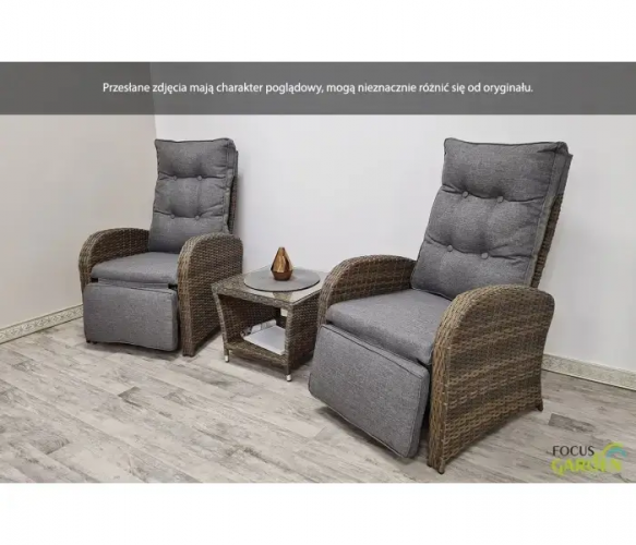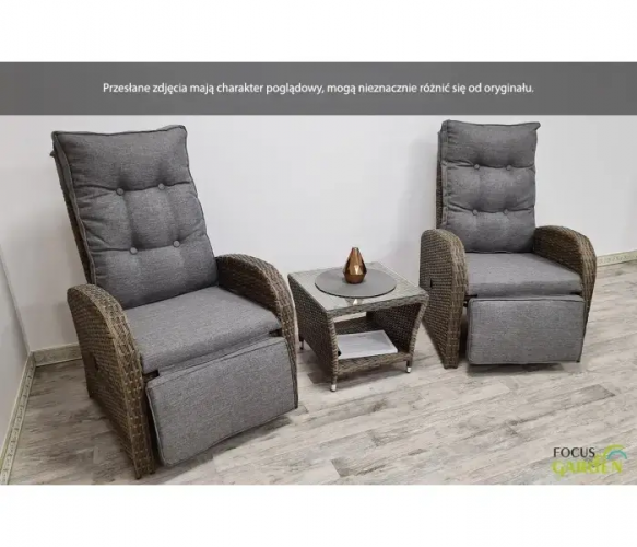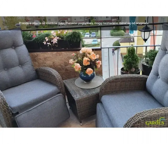 Комплект садовой мебели ALICANTE DUO - набор Alicante Duo Grey состоит из двух современных, стильных кресел со многими удобствами и журнального столика. Это набор мебели из техноротанга, характеризующийся высоким уровнем элегантности и долговечности. И стол, и кресла в наборе Alicante Duo имеют легкий, устойчивый к ржавчине каркас из алюминия с порошковым покрытием, а плетеные изделия разных оттенков серого совершенно нечувствительны к осадкам и солнечному свету. Каждое кресло имеет гидравлический механизм, позволяющий регулировать спинку и подножку в любом порядке. Покупая комплект мебели из техноротанга Alicante Duo для своего сада, вы сможете отдыхать так, как вам будет удобно, а комфорт повысят подушки, входящие в комплект: толстые, мягкие, с наволочкой на молнии. Журнальный столик Alicante Duo Grey lounge set technorattan также имеет несколько полезных элементов, столешница изготовлена из прочного закаленного стекла, а нескользкие концы ножек гарантируют максимальную стойкость, а нижняя полка позволяет всегда держать самые необходимые вещи и аксессуары. руку. Лаунж-набор Alicante Duo из техноратгана будет работать в любых условиях – как в саду, так и в гостиной или гостиной.