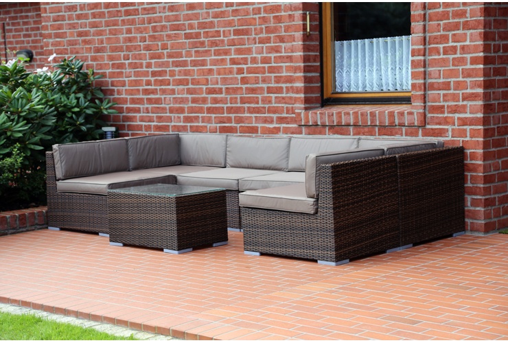 Kansas Maxi – это уникальный садовый уголок, состоящий из 6 отдельных сегментов (которые можно соединить между собой с помощью входящих в комплект кронштейнов) и журнального столика со стеклянной столешницей. Материалы, из которых он изготовлен – стальные профили с порошковым покрытием и плетеный техноротанг – гарантируют многолетнюю эксплуатацию. Мебель можно использовать как жарким летом (устойчивость к ультрафиолету), так и весной и осенью, а также зимой (устойчивость к частым перепадам температуры, мороза и влажности). Большим преимуществом этого уголка является комфорт использования, который обеспечивают подушки со съемной (на молнии) обивкой. Конфигурации, которые мы можем использовать, позволяют использовать уголок наиболее оптимальным для нас образом – например одну часть на террасе, а другую на веранде. Чехлы для подушек можно стирать при температуре 30°C. ОБРАТИТЕ ВНИМАНИЕ: чехлы для подушек пропитаны для защиты от влаги. Для того чтобы материал сохранил свои свойства после стирки, его следует повторно пропитать специальным средством.