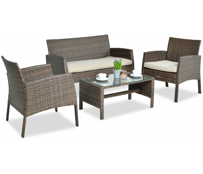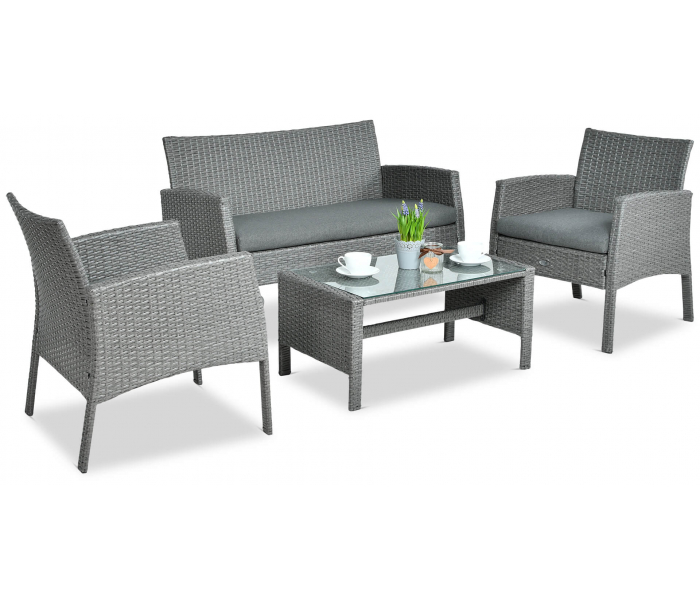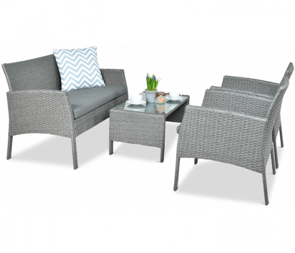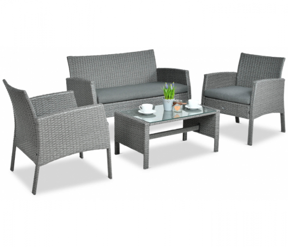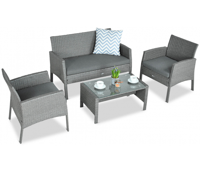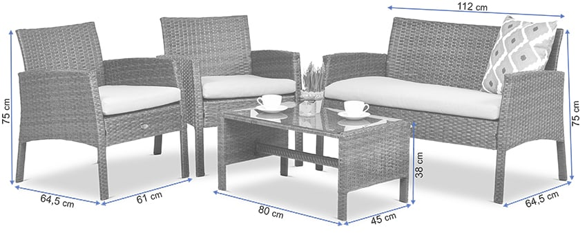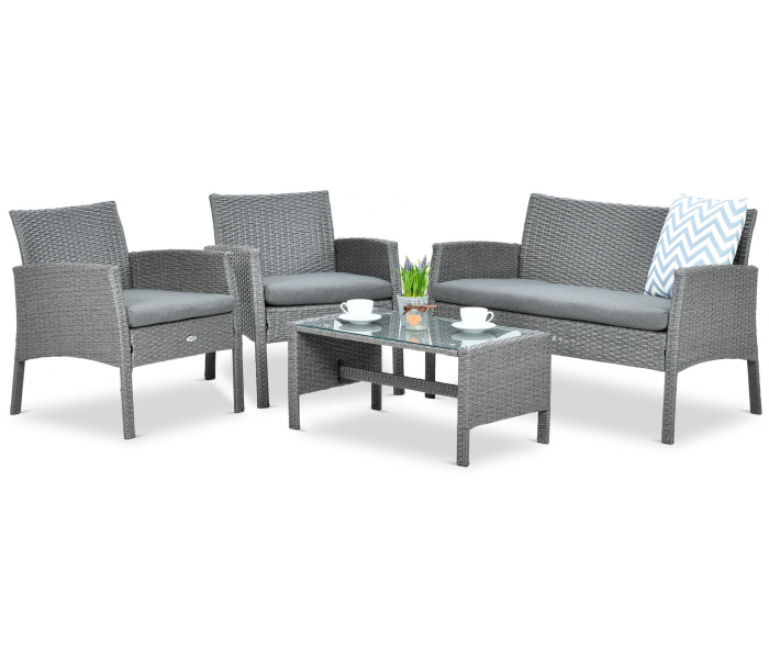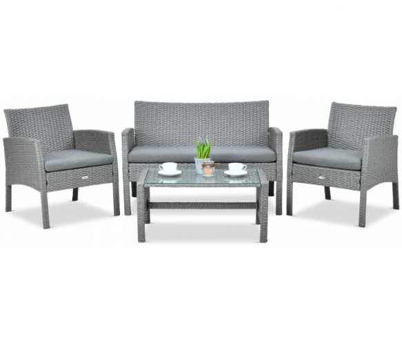 Комплект садовой мебели SAN MARINO – выбирайте простой и стильный комплект мебели из техноротанга и отдыхайте в комфортных условиях. Этот садовый комплект состоит из небольшого двухместного дивана, двух кресел и журнального столика. Это комфортное место для встреч и отдыха для четырех человек. Все сделано из прочного пластика и стали. Входящие в комплект подушки делают сиденья мягкими и очень удобными, а их чехлы на молнии можно легко снять и постирать в стиральной машине. Стол укреплен элегантным стеклом из толстого закаленного стекла. Набор San Marino столь же практичен, сколь и эстетичен. Техноратанг – это материал, известный своей долговечностью и функциональностью. Он устойчив к неблагоприятным погодным условиям и очень легко чистится – любые загрязнения можно удалить влажной тряпкой или мойкой высокого давления. Однако по своей структуре напоминает натуральный материал, поэтому идеально сочетается с садовой зеленью. Благодаря стальному каркасу мебель также очень устойчива и прочна – она, несомненно, прослужит долго. Этот набор садовой мебели – лучшее решение для создания универсального и комфортного уличного садового уголка. Он легко переживет любую погоду и обеспечит вам и вашим гостям желаемый комфорт.
