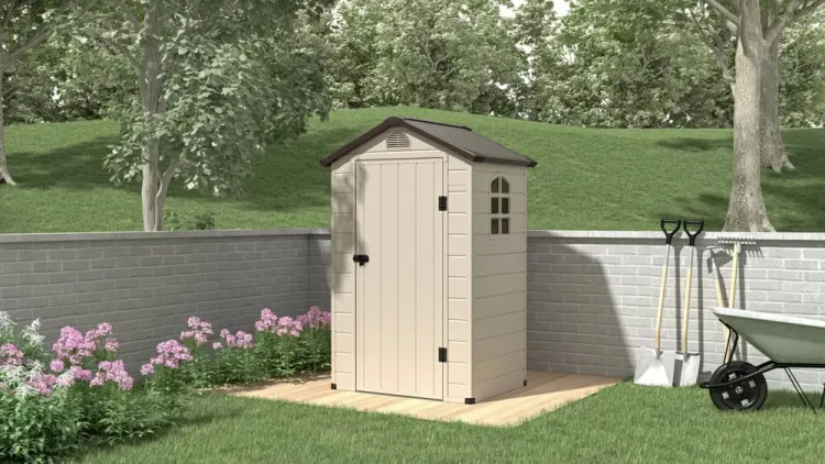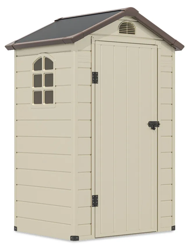 Садовый дом Hardmaister для инструментов VERMONT 134x104 см - это практическое решение для хранения садового инструмента и аксессуаров. Конструкция из полипропиленового листа устойчива к воде, снегу и ультрафиолетовому излучению.Стальные угловые армирования повышают долговечность, а двери с замком на ригель обеспечивают дополнительную безопасность. Боковое окно освещает внутреннюю часть, а наклонная крыша эффективно отводит воду. Вентиляция устраняет проблемы с влагой.Простая сборка не требует специальных навыков.