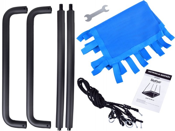 Подвесные качели SKYFLYER SP0659 - подарит море удовольствия в вашем дворе или саду. Она сделана из материалов, устойчивых к погодным условиям. Веревки регулируются по высоте. Прочный каркас, покрытый мягким паролоном, с толстым переплетением веревки, подходит для детей и взрослых. Благодаря универсальным металлическим кольцам качели - ее можно установить где угодно. Качели отлично впишутся в ваш сад, на террасе, а также в комнате. Замечательное развлечение для всех детей и взрослых.