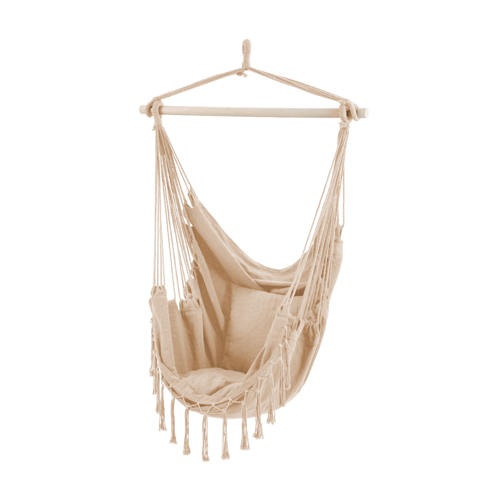 Подвесное кресло-качалка DOMINIKANA - сочетание элегантности, прочности изготовления и непревзойденного комфорта, который сделает каждое мгновение, проведенное в его компании, настоящим наслаждением. Изготовлен из дерева натурального цвета, стержень диаметром 33 мм обеспечивает не только надежную стойкость, но и долговечность на протяжении многих лет использования. Поли-хлопчатобумажная ткань весом 300 г гарантирует мягкость и удовольствие на ощупь, обеспечивая неизменный комфорт в течение долгих часов отдыха на свежем воздухе. Дополнительным преимуществом кресла DOMINIKANA Nature являются кисти, украшенные двумя подушками, которые не только придают ему неповторимый шарм, но и обеспечивают дополнительную поддержку для спины, делая отдых еще более приятным и расслабляющим. Кресло DOMINIKANA Nature легко выдерживает вес до 100 кг, что делает его идеальным выбором для людей, которые ценят не только комфорт, но функциональность и изысканный дизайн. Подарите себе момент блаженного отдыха на свежем воздухе или в интерьере, обернувшись великолепными ощущениями природы, в окружении элегантного и удобного кресла подвесного DOMINIKANA Nature.