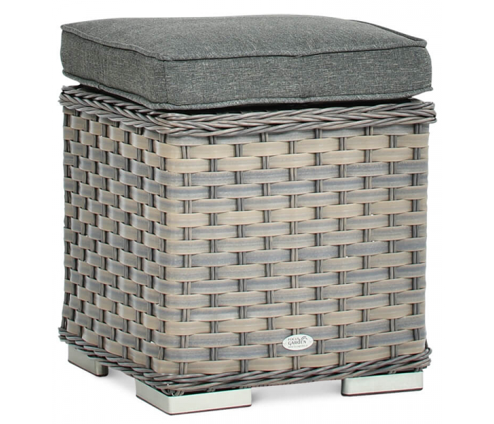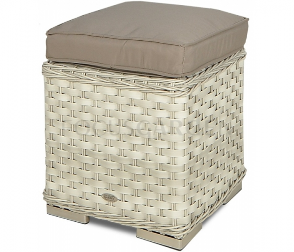 Пуфик TRIVENTO - конструкция изготовлена из алюминия с порошковым покрытием, что обеспечивает стабильность и легкость конструкции и полностью устойчива к ржавчине. Все это украшено высококачественным техноратангом в приятных бело-серых оттенках. Оснащен удобной подушкой сиденья на молнии. Максимальная прочность и устойчивость к погодным условиям и УФ-излучению.