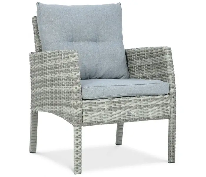 Садовое кресло CORTINA - оправдает все ожидания и гарантирует высокий уровень отдыха. Мебель изготовлена из устойчивого к атмосферным воздействиям техноратанга и держится на каркасе из прочной стали с порошковым покрытием, что обеспечивает жесткость конструкции. Использованные материалы гарантируют, что кресло будет устойчивым и прочным ко всем неблагоприятным факторам: дождю, влаге, ветру, грибкам, УФ-излучению. Сталь с порошковым покрытием, из которого изготовлен каркас, позволит избежать проблем с коррозией – кресло можно оставлять на улице круглый год. Мебель имеет мягкие подушки спинки и сиденья, что обеспечивает максимальный комфорт отдыха. Их чехлы можно легко снять и в случае загрязнения постирать в стиральной машине – они имеют молнии. Кресло не нуждается в трудоемком уходе, его очень легко поддерживать в чистоте – просто используйте мойку под давлением или влажную тряпку. Представленное кресло является частью коллекции CORTINA: вы можете приобрести его в качестве отдельного предмета мебели или дополнить любой гарнитур.