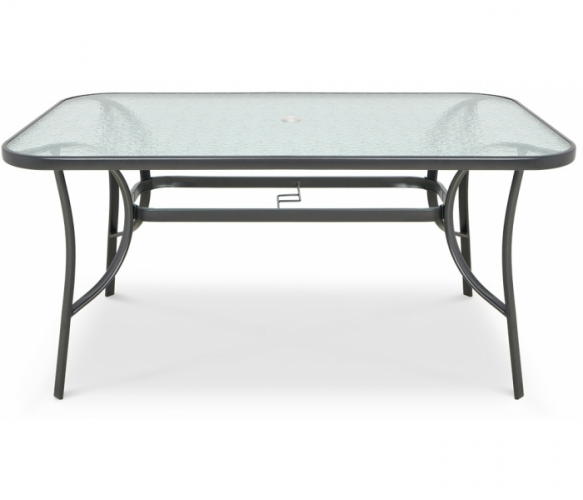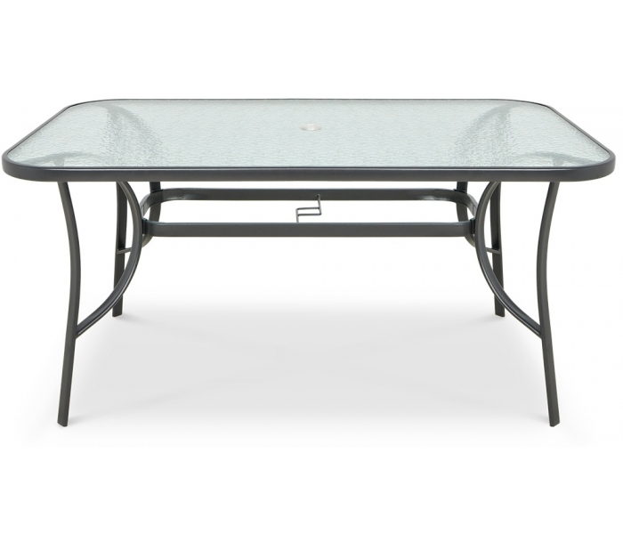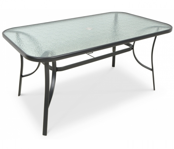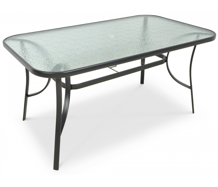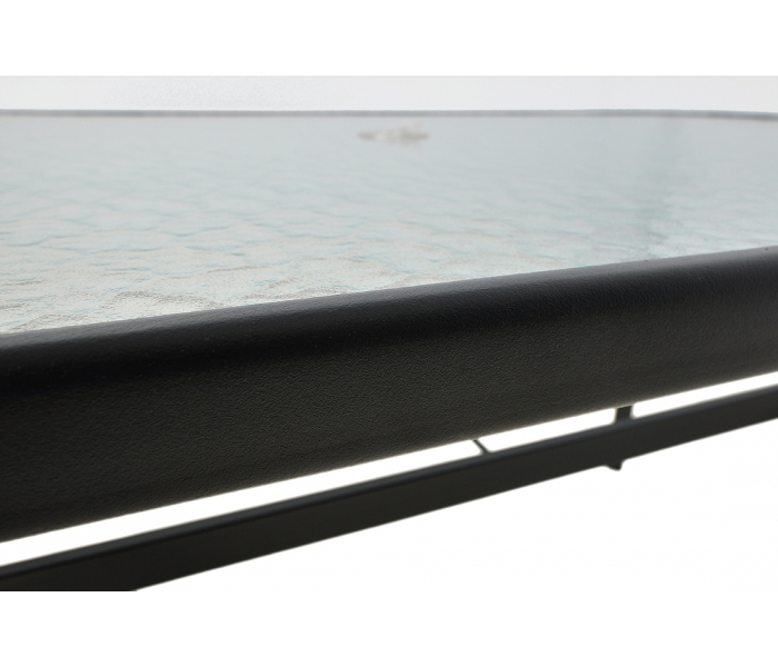 - столешница изготовлена из декоративного, прочного закаленного стекла и оснащена отверстием для зонтика.