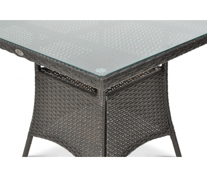 - благодаря использованию материалов высокого качества (техноратанг, алюминий), стол характеризуется максимальной прочностью, устойчивостью к погодным условиям и УФ-лучам.