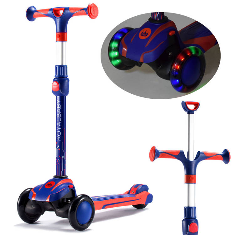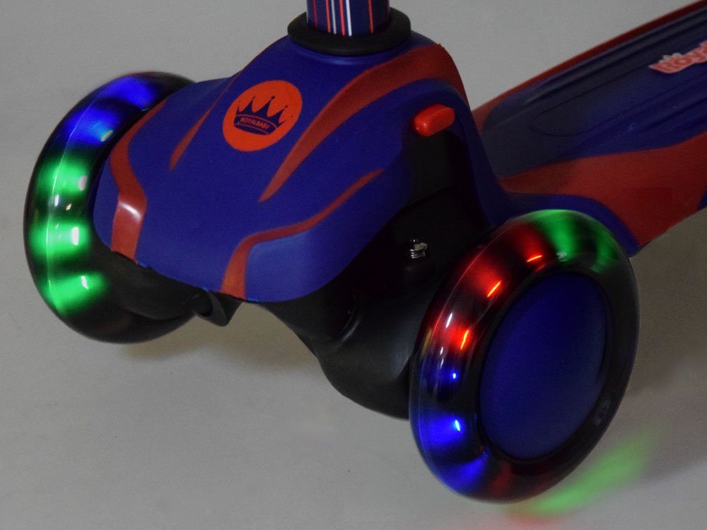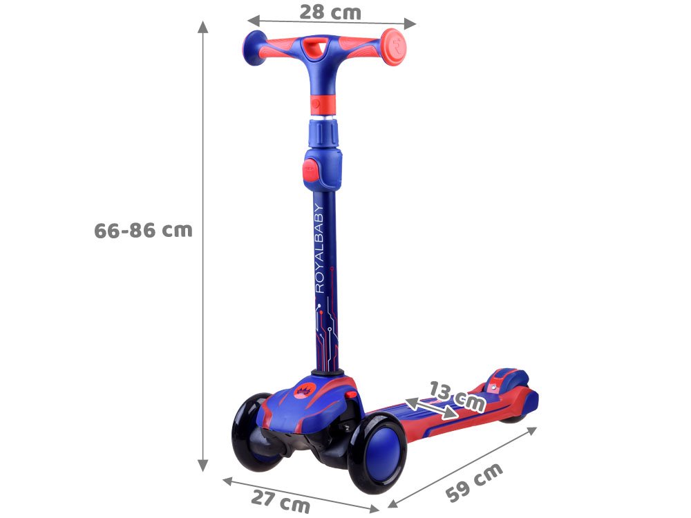 Детский трехколесный самокат RoyalBaby PRO SP0732 - в ярких цветах с светящимися спереди и сзади колесами, предназначенный для обучения и развлекательной езды для самых маленьких детей. Легкая конструкция и качество изготовления будут способствовать развитию равновесия и обеспечат отличные и безопасные развлечения на открытом воздухе. Самокат можно брать с собой куда угодно, особенно на долгие прогулки. Благодаря новой конструкции самокат можно легко сложить после езды. Просто снимите руль, прикрепите его к нижней части самоката, вытяните маленькую ручку – и юный владелец самоката может тянуть свой самокат самостоятельно.Нескользящая платформа и резиновые, бесшумные колеса сделают езду еще веселее. Самокат имеет широкую подножку, задний нажимной тормоз, а передние колеса сбалансированы. Все это можно сложить, поэтому он не займет много места и его легко транспортировать. Его наибольшее преимущество состоит в том, что он будет расти вместе с вашим ребенком, поскольку имеет выдвижную ручку и высокую грузоподъемность до 50 кг. Подходит для детей в возрасте от 3 лет. Самокат-балансир сделает катание еще веселее. Благодаря этой опции ваш ребенок сможет мягко входить в повороты, балансируя собственным телом! Катание на таком самокате поможет развить психомоторику ребенка. Это также полезно для развития равновесия и двигательной координации малыша.