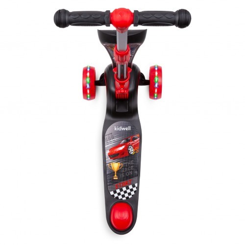 Самокат с сиденьем Kidwell RIMBA - это фантастическая идея для активного проведения свободного времени. Устойчивый и безопасный самокат подарит вашему ребенку массу радости и удовольствия. Раскладное сиденье может мгновенно превратить самокат в велосипед. Это идеальный вариант для самых маленьких, которые начинают свое приключение с транспортом! Удобный механизм смены функций позволяет быстро превратить самокат в велобег без использования инструментов. Просто открутите фиксирующую гайку, затем поднимите сиденье и поверните его на 180 градусов вокруг руля.