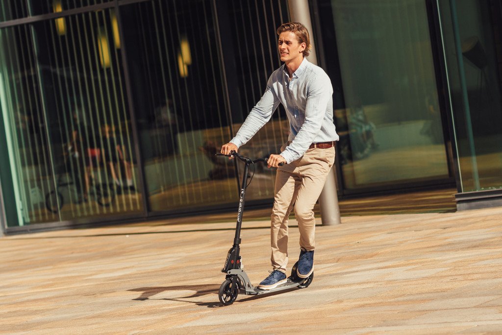 Самокат Globber ONE K 180 BR – компактный, складной дизайн. Инновационная система сборки Kleefer – сборка занимает всего 1 секунду и предусматривает легкий удар ногой по специальной панели (посмотрите видео!). В сложенном состоянии самокат можно удобно вести (или тянуть на себя), а когда колесо заблокировано, его также можно поставить вертикально, прислонив к стене. Широкий (48 см) руль T-Bar (как у велосипеда), пригодный для повседневного использования, обеспечивает надлежащий комфорт и удобство. Рукоятки, изготовленные из высокопрочного материала TPR, обеспечивают лучшее сцепление и большую долговечность. Большая дека (36 х 14 см) с нескользящей поверхностью. джунглях». Большие колеса (180 мм) обеспечивают больший комфорт и меньшую тряску при движении по неровным поверхностям, таким как брусчатка. Прочная конструкция и высококачественные компоненты гарантируют комфортное использование и долговечную надежность.
