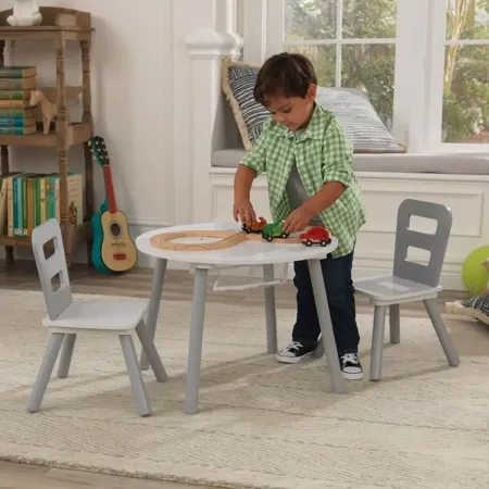 Детский круглый стол и 2 круглых стула Kidkraft 26166 – многофункциональный, идеально подходит для ваших нужд. Универсальный, естественный цвет и современный дизайн идеально впишутся в дизайн интерьера. Детям обязательно понравится возможность использовать стол для рисования, других художественных работ и играть в любимые игры. Удобное сетчатое отделение для хранения, расположенное в центре стола, вмещает карандаши, фломастеры и другие мелочи.