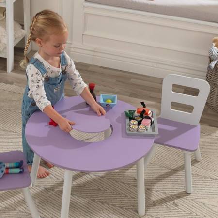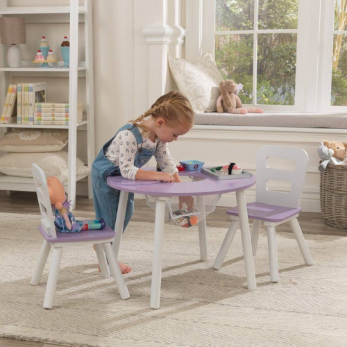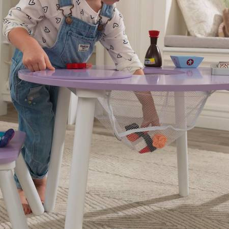 Детский круглый стол и 2 круглых стула Kidkraft Лавандовый 20017 – многофункциональный, идеально подходит для ваших нужд. Универсальный, естественный цвет и современный дизайн идеально впишутся в дизайн интерьера. Детям обязательно понравится возможность использовать стол для рисования, других художественных работ и играть в любимые игры. Удобное сетчатое отделение для хранения, расположенное в центре стола, вмещает карандаши, фломастеры и другие мелочи.