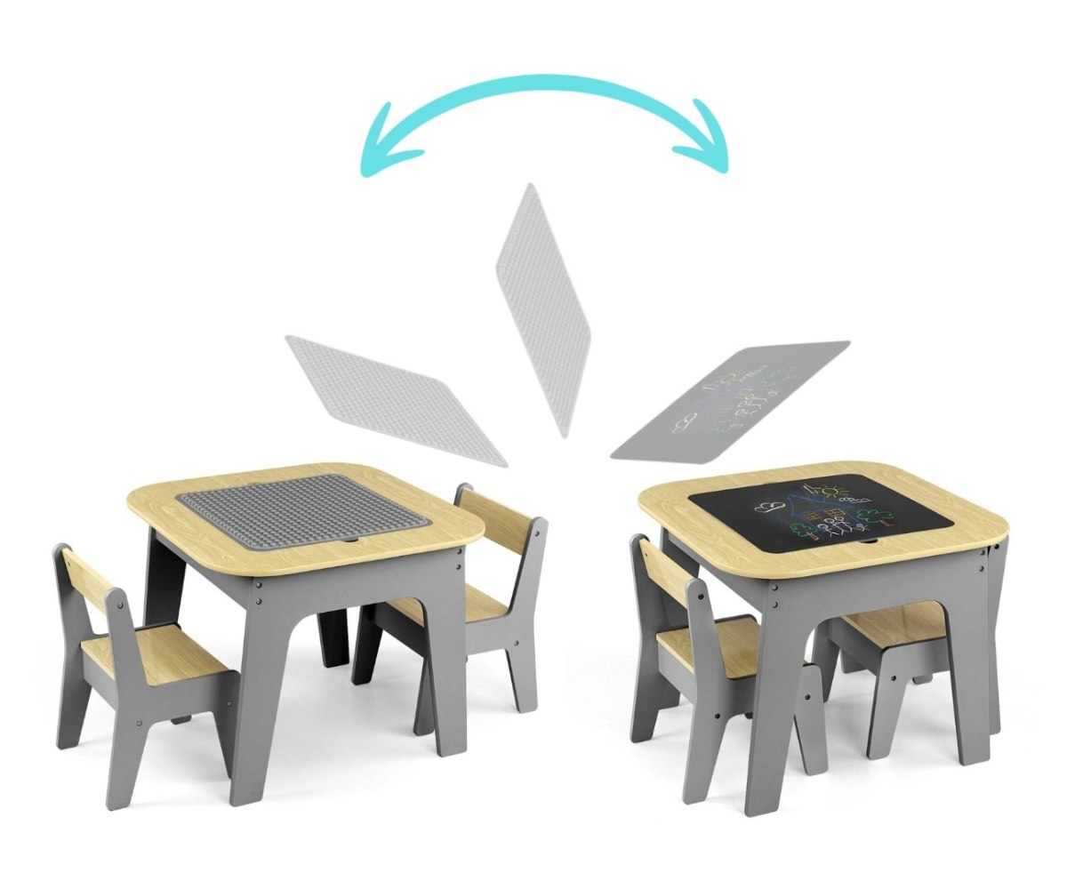 Набор детской мебели Milly Mally Olaf Blocks – стол и два стула – это многофункциональный набор, созданный для того, чтобы обеспечить детям комфорт и пространство для творческих игр и обучения. Стол с двумя стульями выполнен в приглушенных цветах, что придает ему современный и эстетический вид, который подходит к любому интерьеру. Набор Olaf Blocks отличается уникальной столешницей – одна сторона стола покрыта поверхностью, адаптированной под строительные блоки, что делает стол отличной основой для строительства. С другой стороны, есть гладкая поверхность, идеальная для рисования, письма или другой художественной деятельности. Столешница съемная, а под ней есть вместительный отсек для хранения, облегчающий хранение игрушек, кубиков или предметов для творчества, облегчающий соблюдение порядка. Стулья легкие, поэтому их легко переносить детям, а устойчивая конструкция и закругленные углы гарантируют безопасность во время использования. Изготовлена из высококачественного МДФ, мебель долговечна, проста в уходе и легко собирается. В комплекте входят все необходимые элементы для быстрого и беспроблемного монтажа. Нежные цвета набора Olaf Blocks и возможность хранить сокровища в отделении под столешницей вызывают у детей желание использовать этот набор, который станет для них любимым местом для игр и обучения. Детская мебель Olaf станет идеальным выбором Родители, которые хотят создать своим детям комфортное, безопасное и универсальное место для игры и обучения. Этот набор идеально подходит для детской комнаты или игрового уголка, обеспечивая гибкое пространство, которое растет вместе с потребностями ребенка.