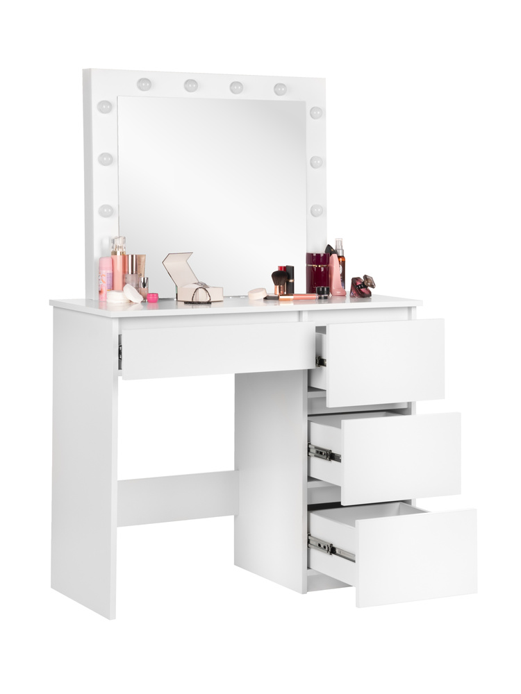 Туалетный столик FunFit со светодиодным зеркалом 3914 - идеально впишется в детскую комнату; это мечта каждой маленькой принцессы!Детям понравится хранить свои шпильки для волос, первую косметику или дневники в ящиках.Красивый и стильный туалетный столик — это одновременно декоративное дополнение к любому интерьеру и практический предмет мебели для ежедневного ухода. Он придаст комнате совершенно новое измерение. Он позволяет собрать всю необходимую косметику и средства ухода за кожей в одном месте, что позволяет наносить макияж и укладывать волосы каждый день.