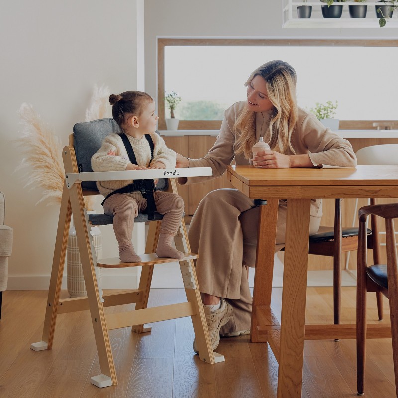 Кресло для кормления Lionelo Floris - деревянный стул, который растет вместе с вашим ребенком. Благодаря многоступенчатой регулировке (в инновационной системе крепления) он гарантирует максимальный комфорт и удобную посадку.Кресло будет использоваться ребенком приблизительно с 6 месяцев (или с момента, когда он начинает самостоятельно сидеть) до 12 лет.В нем можно покормить малыша или поставить его за общий стол, а после снятия подноса и подножки это будет удобное кресло для учащегося начальной школы.
