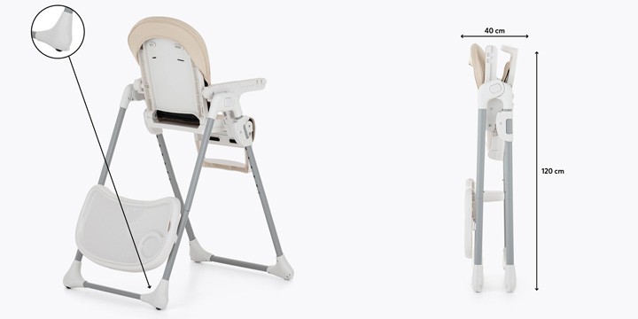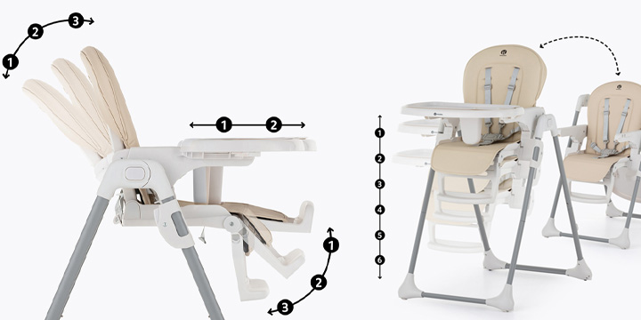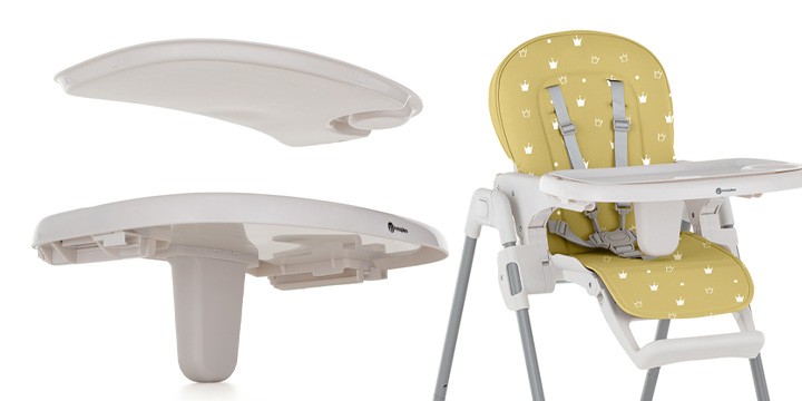 Стул для кормления Petite and Mars Gusto Complete – это стул с хорошо продуманным дизайном, который делает большой акцент на возможности повторного использования стула в будущем. Сидение стула имеет контурную форму и регулируется на 3 уровня, так же как и подставка для ног. Мы также можем изменять высоту всего стула в 6 ступеней. Gusto имеет двойной поднос, который можно снять и почистить. Конструкция стульчика для кормления Petite&Mars Gusto состоит очень быстро и удобно. Предложение включает в себя конструкцию стула и различные варианты обивки. Таким образом, когда текущая обивка изнашивается, мы можем заменить ее новой версией. Таким образом, мы сохраняем конструкцию стула, давая ему вторую жизнь. Легкая сборка и компактные размеры идеально подходят для небольших помещений, а возможность хранить поднос в задней ручке позволит родителям держать вещи в порядке. Стул стоит на четырех крепких ножках, передние из которых имеют противоскользящие накладки, а задние – колеса.