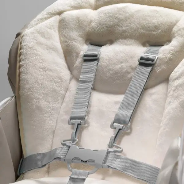 - стул, оснащенный мягким сиденьем с мягкой обивкой, обтянутым экологической кожей, идеально подходящей для приема пищи, и тканью летом/зимой для сна и игр