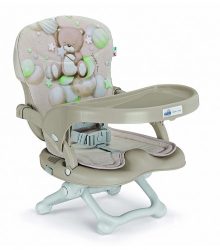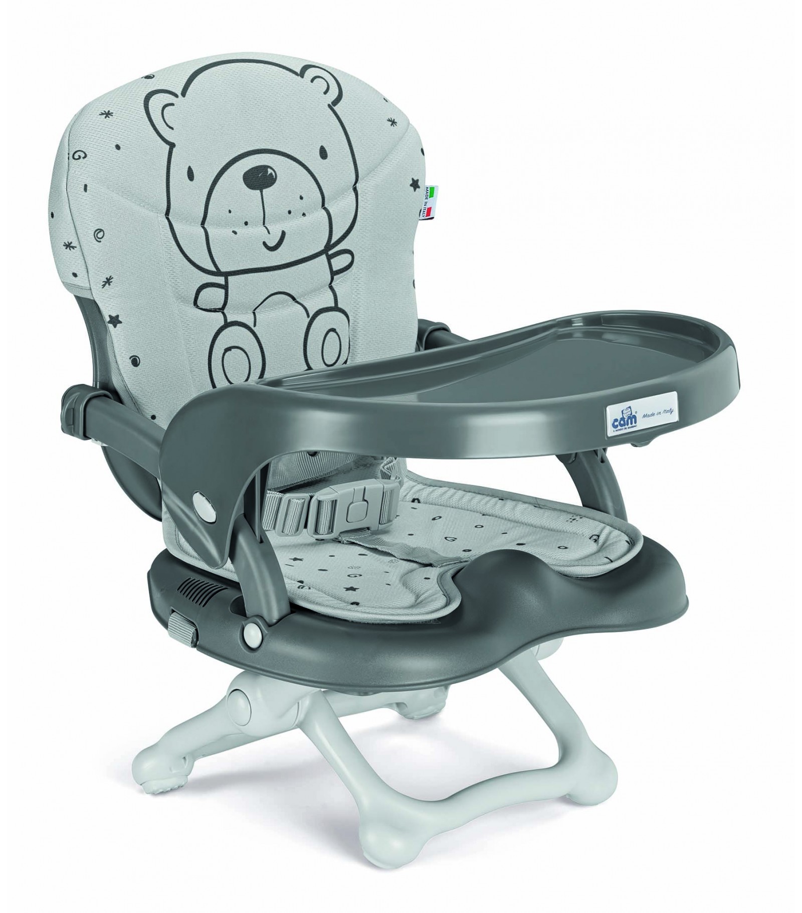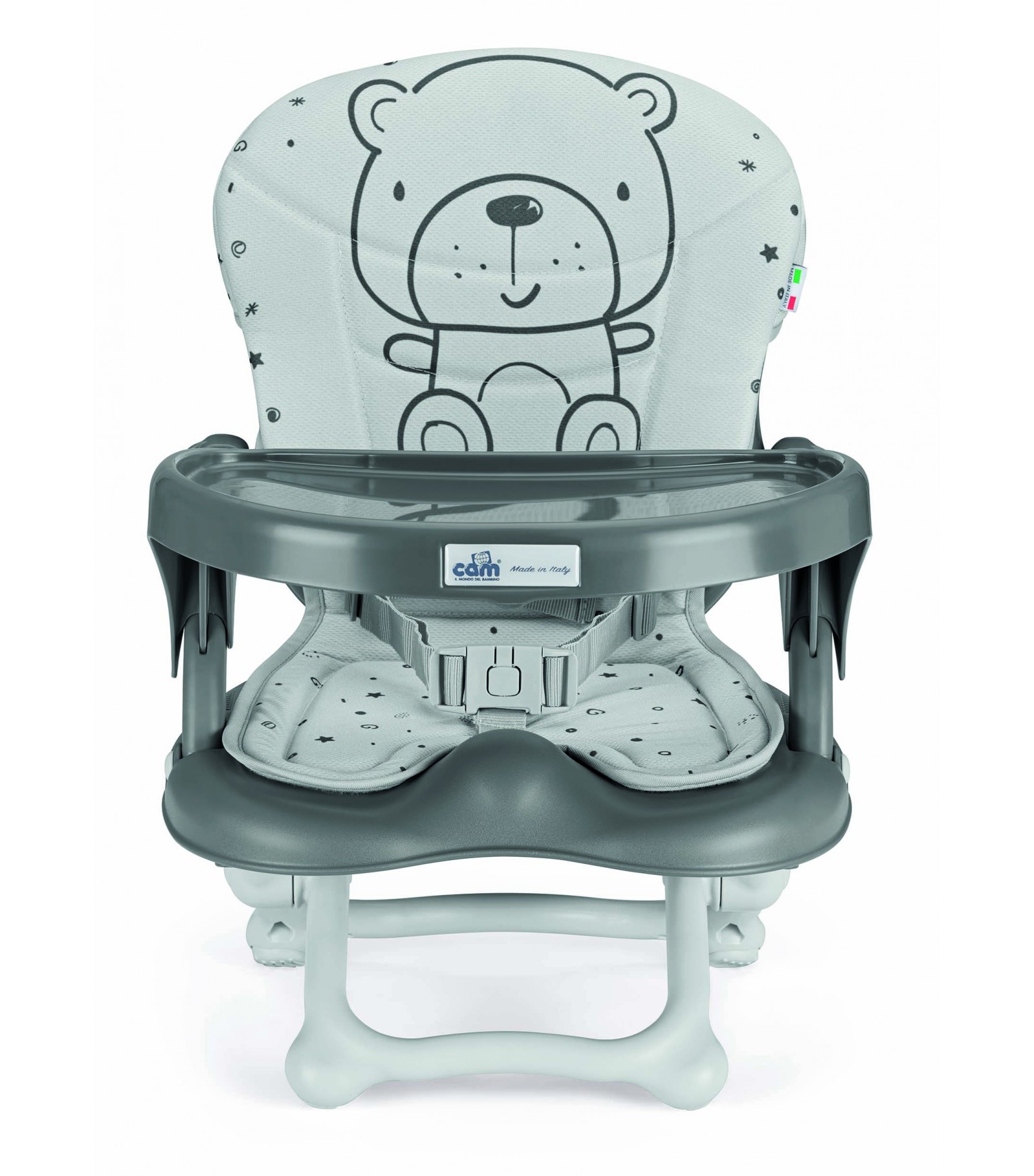 Стульчик для кормления Cam Smarty Pop 2018 ( Кам Смарти Поп ) - крепится на обычный стул со спинкой при помощи специальных ремней. Идеален для путешествий, незаменим в поездках, занимает немного места. Имеет съемный широкий столик-поднос, который регулируется в 4-х позициях. Стульчик снабжен трехточечным ремнем безопасности. К взрослому стулу крепится жестко за счет ремней (сбоку и снизу) и распорки. Столик регулируется по высоте.