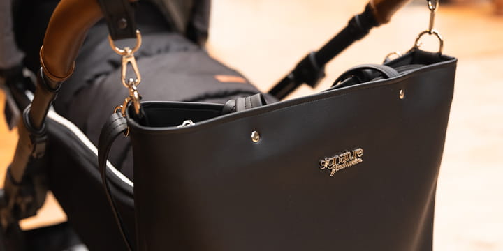 - Установка на раму коляски здійснюється за допомогою гачків, вбудованих в сумку. Виглядає дуже елегантно, а сама збірка займає буквально мить.