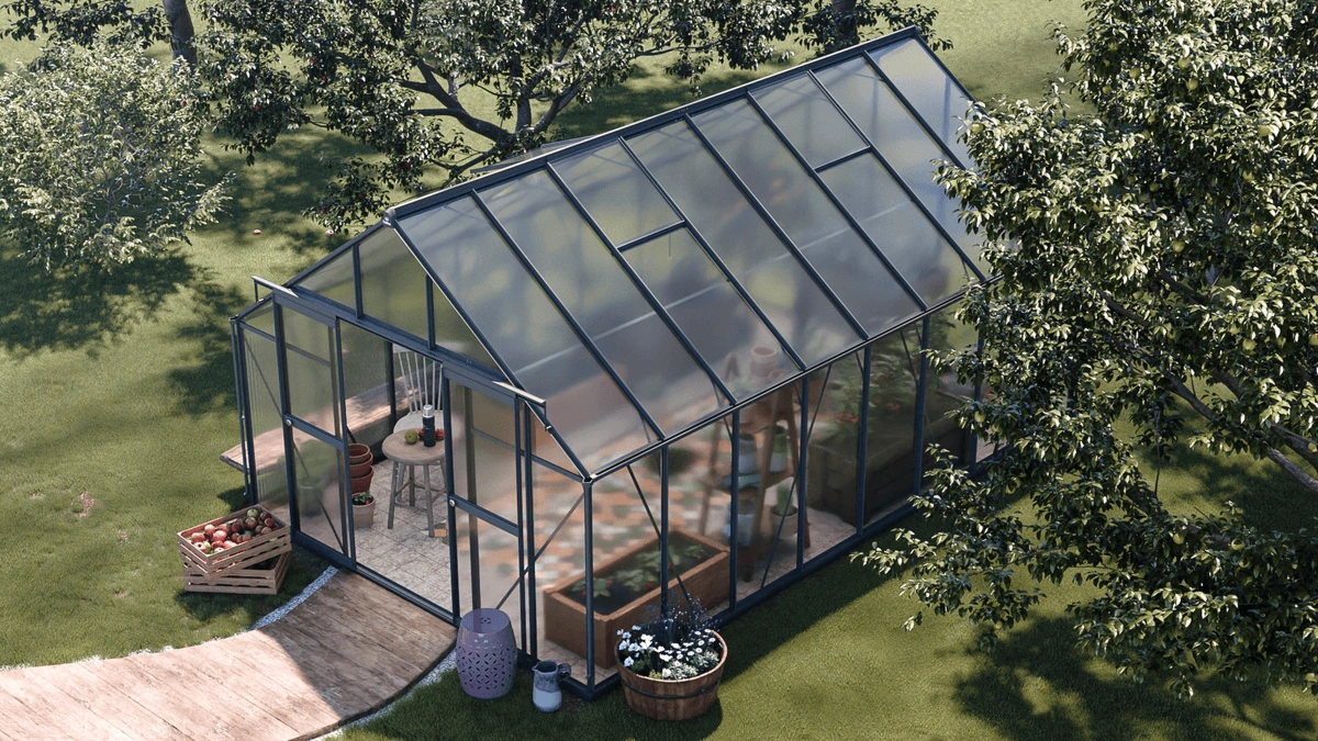 Садовая теплица-парник из поликарбоната Cultivo Slide-In 305x489cm - это функциональное решение, сочетающее в себе долговечность, просторность и эстетику. Изготовленная из прочной алюминиевой рамы и двустенных 6-миллиметровых поликарбонатных панелей, она обеспечивает превосходную защиту от вредного ультрафиолетового излучения, обеспечивая оптимальное внутреннее освещение. Благодаря инновационной системе Slide-In панели задвигаются в рамы, обеспечивая большую стабильность и устойчивость к погодным условиям. Впечатляющие размеры теплицы: 489 см в длину, 305 см в ширину и 245 см в высоту, обеспечивают достаточно места для выращивания растений.Четыре вентиляционных окна обеспечивают эффективную циркуляцию воздуха, обеспечивая достаточную влажность и предотвращая перегрев растений.Раздвижная дверь размером 172x114 см облегчает доступ к внутренней части, а высота стен делает передвижение комфортным. Дополнительным преимуществом является водосточный желоб 45 см, который позволяет собирать дождевую воду, способствуя экологически чистому поливу. Эта теплица – отличный выбор для любого садовода, ценящего качество и функциональность. Идеально подходит для круглогодичного выращивания растений!