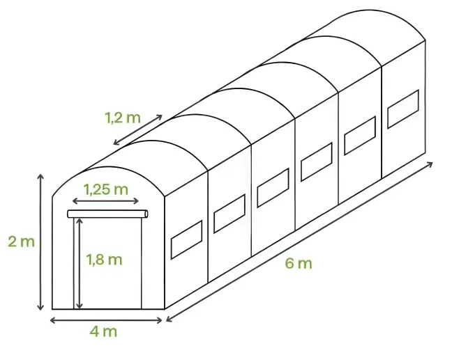 Садовая теплица-парник 24m2 Cultivo 3x8x2 green 007278 - прекрасный вариант для любителей садоводства, предлагающий прекрасную альтернативу традиционным теплицам. Его прочная конструкция, изготовленная из оцинкованных стальных профилей и прочной полиэтиленовой пленки плотностью 140 г/м² с фильтром UV4, эффективно защищает растения от неблагоприятных погодных условий.Его высота 200 см и широкая дверь с обеих сторон обеспечивают свободу передвижения и комфорт во время садоводства. Политунель площадью 24 м² оснащен 12 окнами с москитными сетками, что обеспечивает надлежащую вентиляцию и создает идеальные условия для выращивания овощей, трав и цветов. Это идеальное решение для ищущих функциональные и долговечные решения для сада.