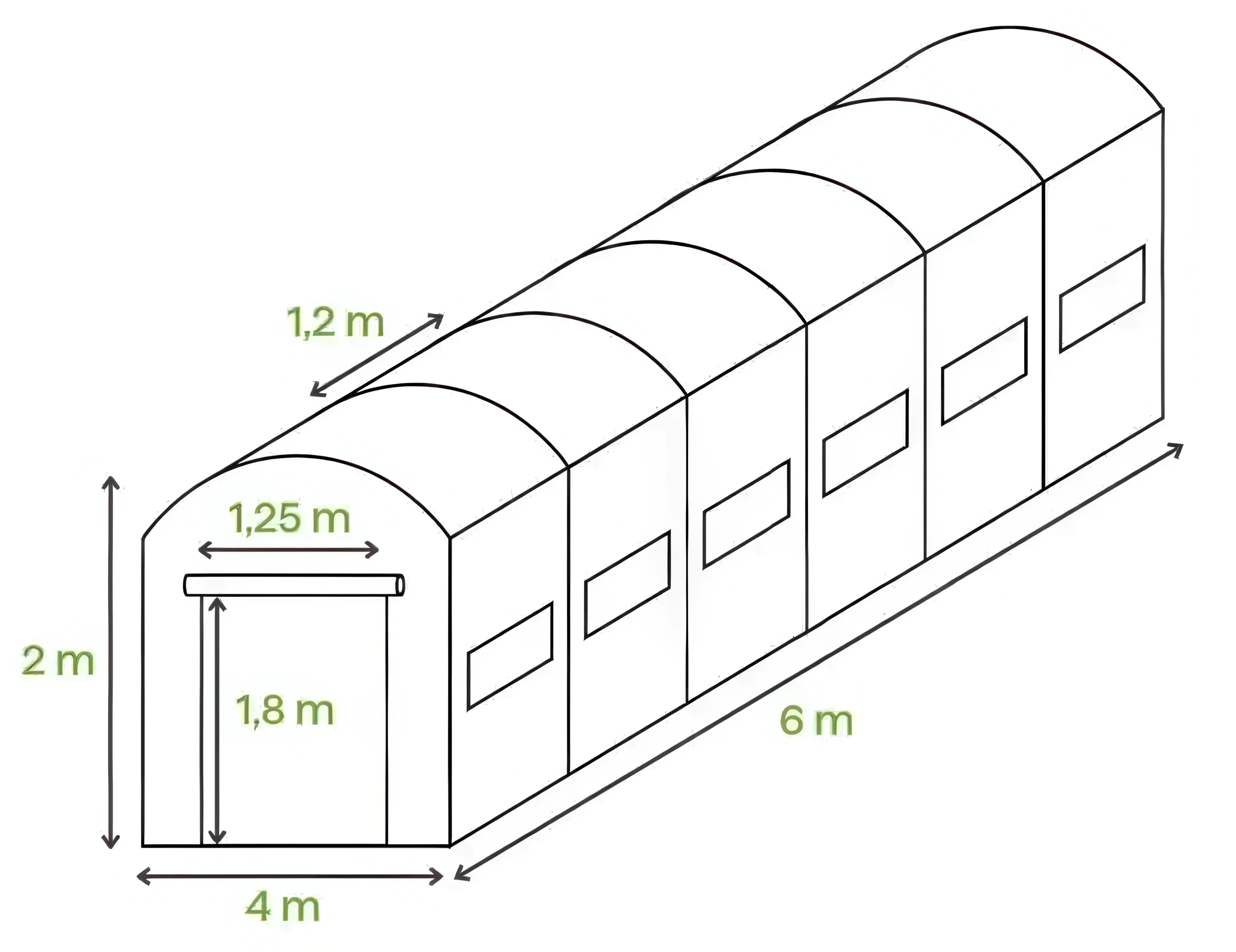 • Наружные размеры: ширина: 400 см глубина:  600 см высота: 200 см