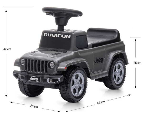 Машинка-каталка Milly Mally Jeep Rubicon Gladiator - изготовлена с вниманием к мельчайшим деталям и качеству использованных материалов. Каждый маленький автолюбитель будет в восторге от интуитивно понятного руля с реалистичными звуками гудка и запуска двигателя. Благодаря шасси с антиопрокидывающейся системой и металлическим осям, транспортное средство обеспечивает безопасную игру для детей. Легкая пластиковая конструкция и эргономичный дизайн автомобиля обеспечивают комфортную езду. Автомобиль доставляет удовольствие от управления и развивает чувство равновесия и общие моторные навыки ребенка. Игра через физическую активность – отличный способ поддержать здоровое развитие детей. Этот внедорожник можно использовать в качестве первого детского транспортного средства с настоящим рулем и гудком или в качестве толкателя с большим отделением для хранения под сиденьем, где ребенок может хранить свои игрушки. Его очень легко собирать и разбирать, он устойчив и безопасен.