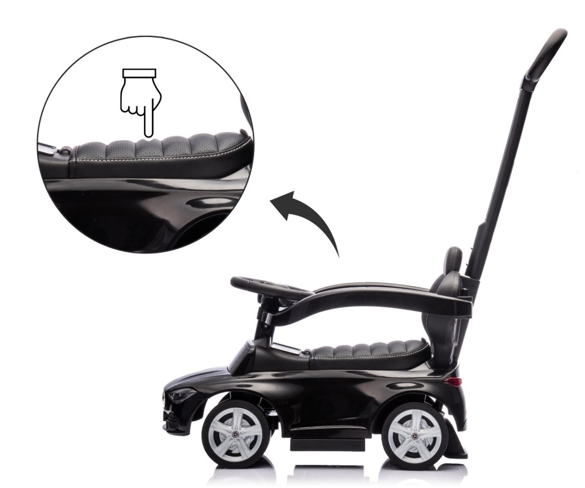 Машинка-каталка Milly Mally MERCEDES C-Class Deluxe – это элегантная и невероятно реалистичная игрушка, которая не только дарит детям море удовольствия, но и способствует их развитию. Разработанный с учетом потребностей самых молодых автолюбителей этот миниатюрный Mercedes пленит своим дизайном и вниманием к деталям. Дети могут почувствовать себя настоящими водителями, открывая для себя радость своих первых поездок и исследуя окружающую среду. Это уникальное сочетание классического стиля, комфорта и функциональности, которое скоро станет любимой игрушкой каждого малыша. Этот автомобиль не только обеспечивает активные развлечения, но служит образовательной цели, развивая ключевые моторные навыки и обучая основным принципам движения. Используя автомобиль, дети развивают мелкую моторику и координацию рук и ног, что способствует их общей физической подготовке. Реалистичный дизайн, вдохновленный Mercedes C-Class, привлекает внимание такими деталями, как элегантная отделка, резиновые шины, логотип бренда, руль со звуками и счетчики, которые стимулируют детское воображение и позволяют к творческой игре. Удобное сиденье из экокожи со спинкой и выдвижными подножками обеспечивает стабильность во время движения, а съемные защитные перила и защита от опрокидывания обеспечивают безопасность. Под сидением есть практическое отделение для хранения, где дети могут хранить свои сокровища или игрушки, обучая их порядку и ответственности за свои вещи. Транспортным средством легко управлять и маневрировать. Благодаря простому механизму рулевого управления, дети могут легко поворачивать, изучая основы навигации и маневрирования.