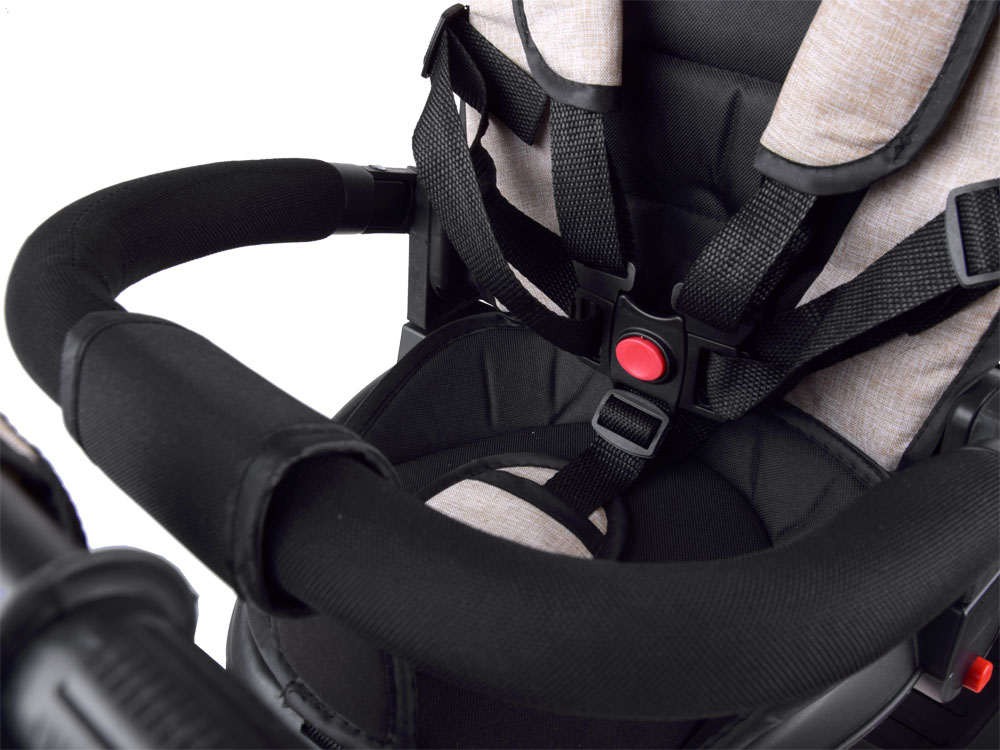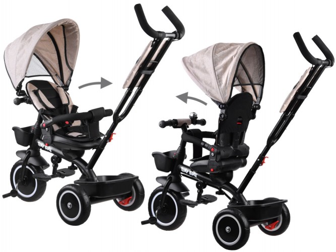 Детский трехколесный велосипед 3в1 Tiny Bike SP0650 - непременно понравится любому малышу. Он предназначен для детей от 6 месяцев до 5 лет. Велосипед многофункциональн: он сочетает в себе функции коляски, прогулочного и трехколесного велосипеда. Его наибольшее преимущество – функциональность и современный дизайн. Велосипед с капюшоном оборудован подножками, на которые ребенок может поставить ноги во время путешествия; когда они не используются, их можно легко сложить, чтобы не мешали. Задние колеса оснащены стопорными тормозами для комфорта и безопасности при остановке велосипеда во время прогулки. Безопасность малыша также обеспечивают 5-точечные ремни безопасности с удобными накладками и мягкий барьер, обтянутый тканью.Сидение покрыто мягким чехлом, чтобы сделать поездку более комфортной и удобной. Его спинка легко откидывается назад, когда малыш устанет от поездки. Ее можно без труда повернуть в другую сторону или снять, когда ребенок немного подрастет. Несомненным преимуществом является складной капюшон, который можно приспособить к погодным условиям, а сетка обеспечит хорошую вентиляцию. Капюшон защитит вашего малыша от солнца, дождя или ветра, а сетка сзади позволит вам следить за ребенком и сохранять его прохладу в жаркие дни. Все чехлы легко снимаются и стираются при температуре 30°C. На ручке для переноски есть небольшая сумка для родителей, чтобы хранить мелкие вещи, такие как кошельки, телефоны и ключи. Tiny Bike многофункциональный и растет вместе с ребенком! Когда ребенок еще маленький, бежевый велосипед 3 в 1 может управляться родителями с помощью руля. Управлять очень удобно и взрослый имеет полный контроль над транспортным средством. Позже, когда малыш чуть-чуть подрастет и сможет дотянуться до ног, он сможет свободно крутить педали. Позже ненужные компоненты можно снять, чтобы создать удобный трехколесный велосипед для ребенка, идеально подходящий для первого обучения езде на велосипеде. Руль на велосипеде имеет резиновые ручки на концах, чтобы предотвратить скольжение руля и обеспечить безопасность и комфорт во время езды.