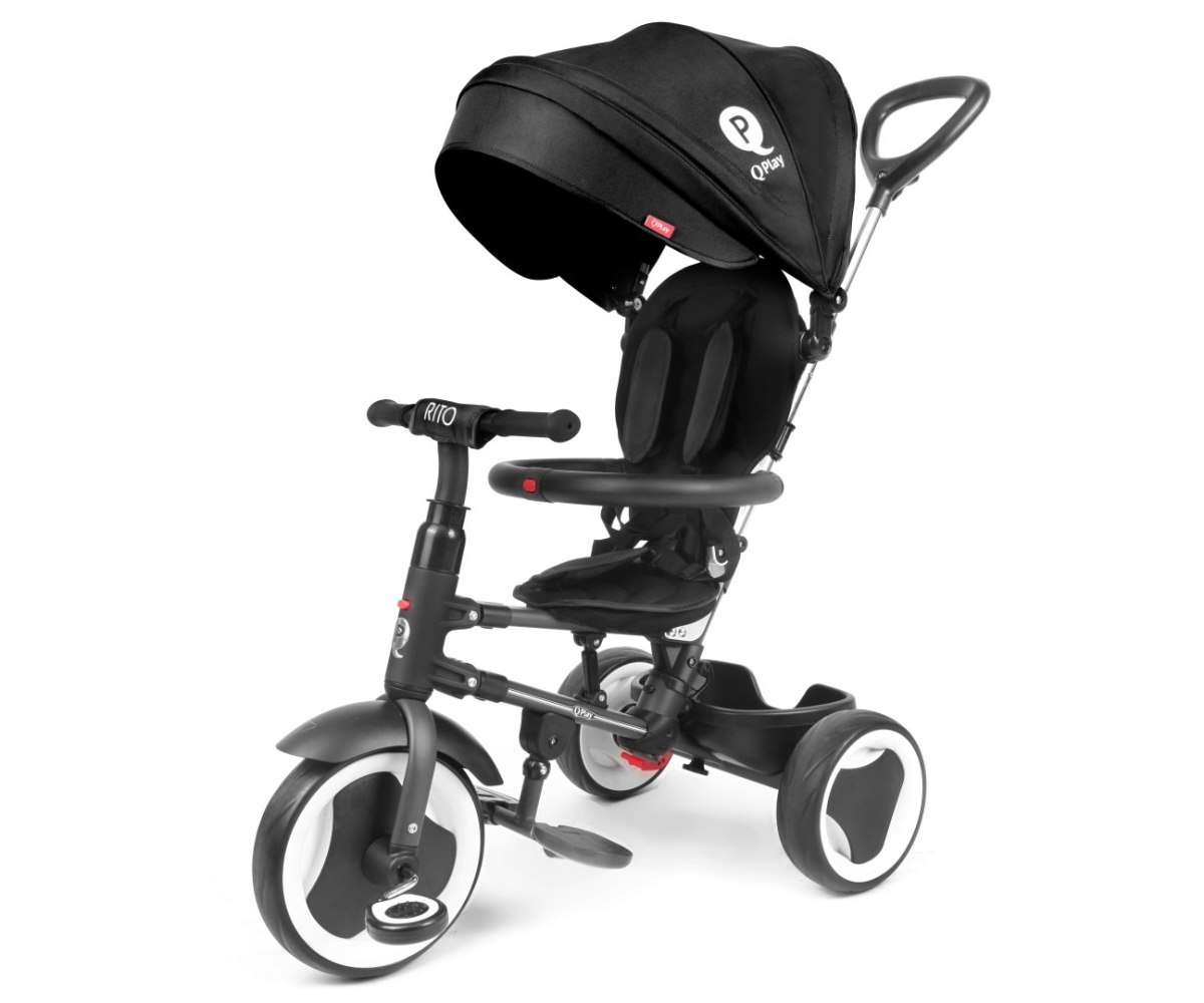 Трехколесный велосипед Qplay Rito - создан с мыслью о комфорте и безопасности детей и удобстве родителей. RITO стабилен и безопасен, имеет современную конструкцию и удобное, контурное сиденье. Велосипед оснащен барьером для защиты ребенка от выпадения, пятиточечными ремнями безопасности и подножкой, а поролоновые колеса обеспечивают тихую и комфортную езду. После демонтажа ручки, рейлингов, капюшона и чехла сиденье RITO будет служить как трехколесный велосипед. Благодаря функции «свободное колесо и руль» ребенок может свободно крутить педали и вращаться, а родительская ручка все еще может корректировать скорость и направление движения. Сочетание металлической конструкции, пенопластовых колес и элементов из высококачественного пластика гарантирует долговечность и комфорт. Велосипед относится к семейству продуктов GROW UP - он растет вместе с ребенком.