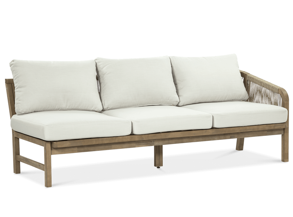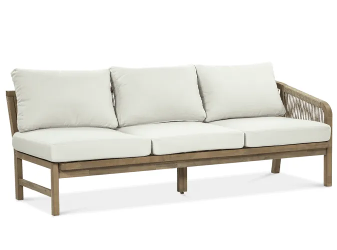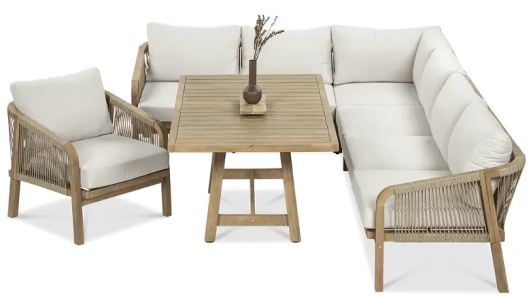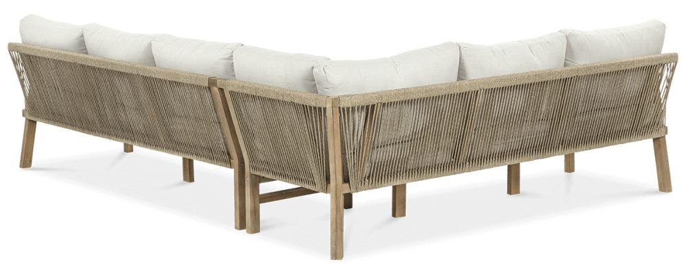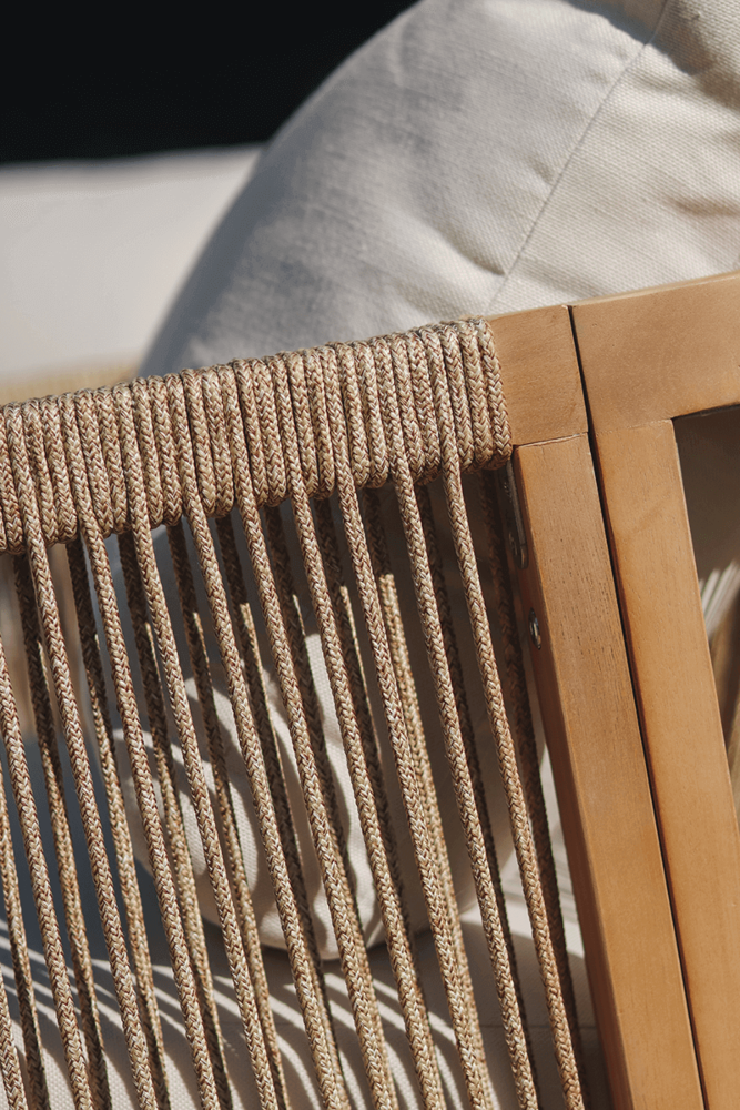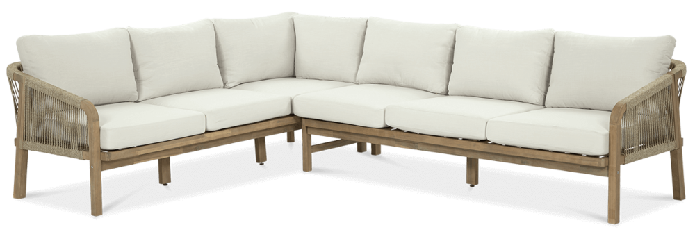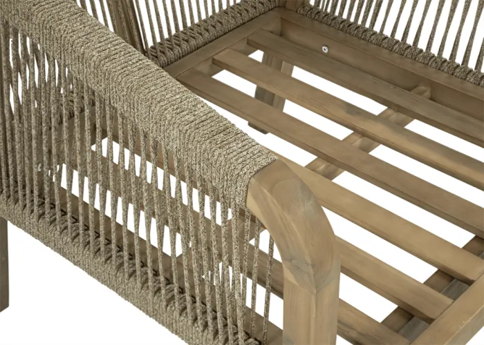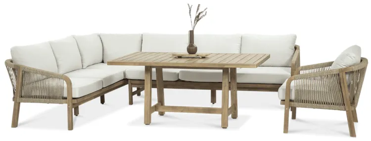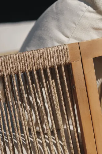 Деревянный угловой диван Furrore Marigold Dining – это роскошный и элегантный угловой диван и кресло премиум-класса, которые идеально дополнят современную террасу в оригинальном стиле. Набор состоит из эффектного дивана, состоящего из двух модулей, дополнительного кресла и прямоугольного журнального столика длиной 150 см, создавая внечасовой набор для семи человек. Мебель изготовлена из натурального дерева акации светлого цвета, что напоминает об экзотическом отдыхе и придает шарму всему устройству. Угловой диван и кресло отличаются высоким качеством исполнения и уникальным дизайном. Мебель украшена полиэстеровой веревкой диаметром 6 мм на спинках, что подчеркивает их элегантный характер. Кроме того, мебель сертифицирована FSC, что означает, что древесина, используемая для их изготовления, происходит из должным образом управляемых лесов.Мебель очень прочная, устойчивая к погодным условиям и УФ-излучению, что обеспечивает долгие годы эксплуатации. Их также легко поддерживать в чистоте, что позволяет легко постирать их водой и постирать наволочки в стиральной машине. Угловой диван MARIGOLD DINING можно произвольно модифицировать, что позволяет создать мини-кофейную зону с креслом и дополнительным столиком. Мебель также хорошо сочетается с рядом натуральных аксессуаров, таких как лен, лоза, дерево или хлопок. Обеденный набор Furrore Marigold – отличный выбор для людей, которые ищут роскошную мебель для обустройства террасы, оранжереи или сада. Эта мебель идеально впишется в естественный стиль интерьера и станет прекрасным дополнением к другим гарнитурам серии MARIGOLD. Это престижный и эксклюзивный бренд, который непременно привлечет внимание гостей и станет украшением пространства вокруг него. Помните! Чтобы деревянную мебель можно было безопасно использовать на улице, ее необходимо правильно подготовить. Таким лечением является импрегнация. Он предусматривает нанесение на мебель специального средства, защищающего мебель от контакта с влагой, а следовательно, от разрушения или деформации. Еще один способ оградить деревянное оборудование от погодных условий – смазать его маслом. В зависимости от того, сколько древесины используется, ее рекомендуется смазывать не реже одного раза в год. Дополнительно также следует защитить мебель чехлом. Хотим обратить ваше внимание на неповторимую красоту и естественность деревянной мебели. Следует помнить, что дерево – живой материал, дышащий. Благодаря этому он привносит свою аутентичную атмосферу в окружение. Однако со временем он может претерпеть незначительные изменения, такие как легкие трещины или изменение оттенка через солнечный свет. Это естественный процесс, подчеркивающий его уникальность.