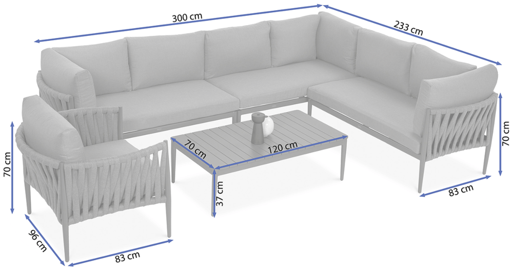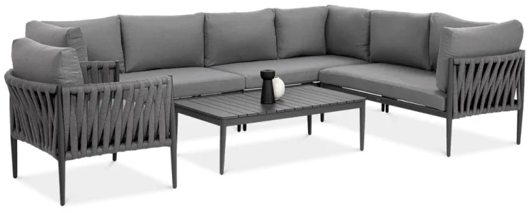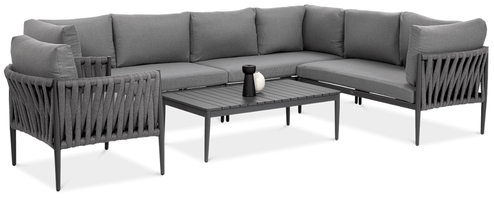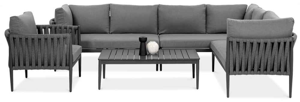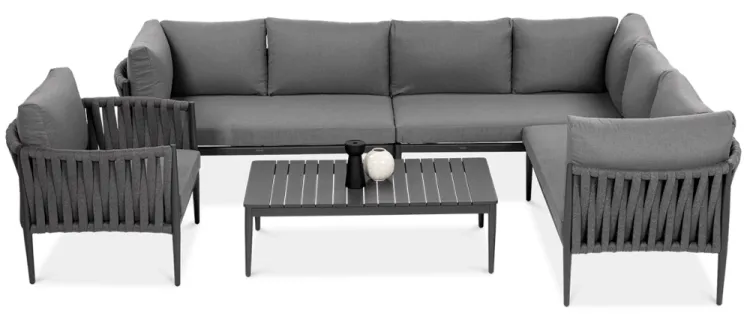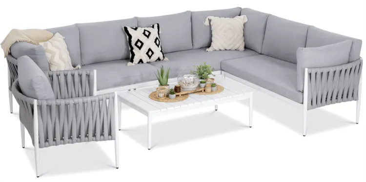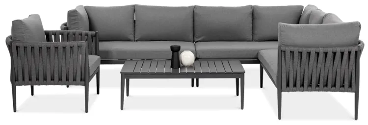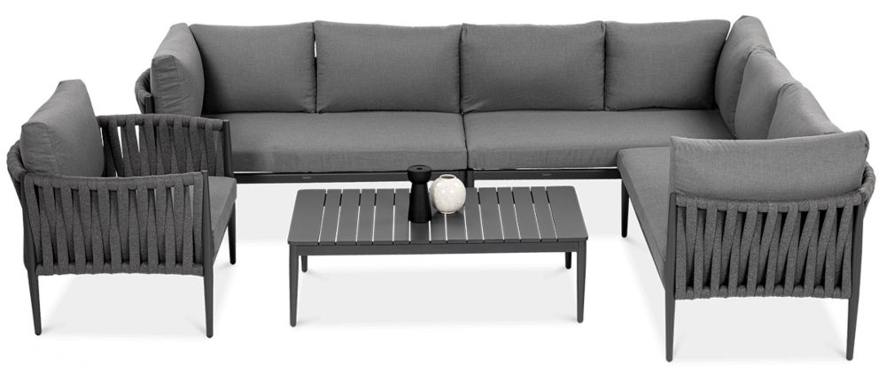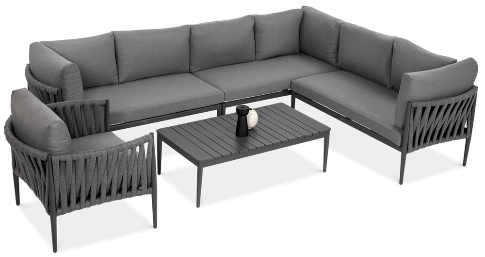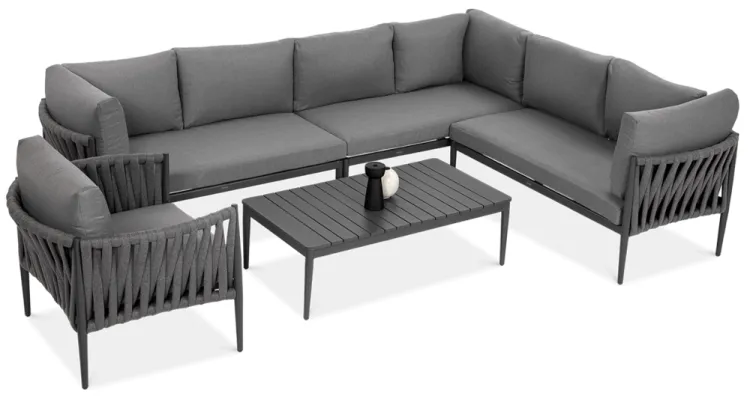 Садовый угловой диван с креслом Furrore Monza Caffe – это эксклюзивный комплект мебели премиум-класса, поражающий своим современным дизайном и изысканным характером. Комплект мебели состоит из трех роскошных 2-местных угловых диванов, образующих элегантный угловой диван, большого и удобного кресла и стильного журнального столика длиной 120 см. Каждый элемент набора тщательно разработан с учетом комфорта и эстетики. Мебель MONZA CAFFE отличается не только но и высоким качеством изготовления. Конструкция из легкого и очень прочного алюминия с порошковым покрытием и нейлоновый шнур, которым отделаны спинки диванов и кресла, придают мебели уникальный, современный и футуристический вид. Яркий цвет в оттенке серого подчеркивает изысканный и оригинальный характер мебели. Кроме того, мягкие и очень удобные подушки с серыми чехлами придают элегантности мебели и обеспечивают еще больший комфорт использования. Мебель из линии MONZA очень прочна и устойчива к погодным условиям и ультрафиолетовому излучению, что делает их прекрасным украшением сада на долгое время. Набор CAFFE идеально сочетается с современным дизайном террасы, зимнего сада и сада. Он является идеальным дополнением в гостиную и столовую, позволяя приятно проводить время на свежем воздухе и организовывать вечеринки в саду. Легкая конструкция мебели позволяет ее легко перемещать и приспосабливать к текущим потребностям. Благодаря нейтральной цветовой гамме набор MONZA CAFFE можно легко адаптировать к разным стилям аранжировки, от светлых и спокойных до более выразительных с контрастными аксессуарами. Возможность модифицировать комплект по собственному желанию позволяет использовать его как отдельные элементы, например угловой диван, кресло или небольшой журнальный столик. Если вы ищете комплексное обустройство современной террасы в оригинальном стиле, садовый уголок MONZA CAFFE станет идеальным дополнением к другой мебели из серии MONZA. Высокое качество изготовления и исключительный дизайн мебели MONZA CAFFE непременно оправдают ожидания самых взыскательных клиентов, ценящих элегантность, комфорт и современность.