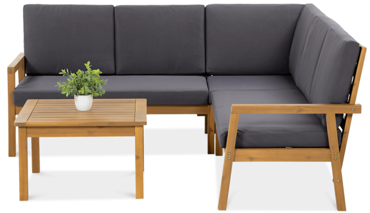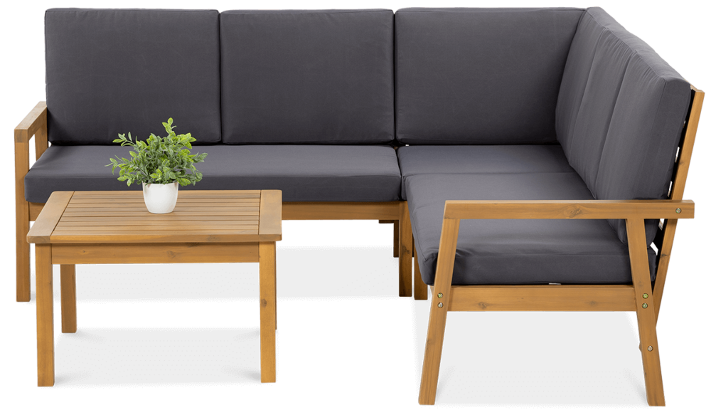 Комплект садовой мебели NORBERG – ищете элегантный и удобный лаунж-набор для своего сада? Обратите внимание на деревянный угловой диван Norberg, продаваемый в комплекте с практичным журнальным столиком. Это определение стиля и вкуса и комфорта. Просторный угловой диван из натурального дерева акации будет отлично смотреться среди ухоженных зеленых насаждений и отлично впишется в современную архитектуру. Его силуэт напоминает стильную мебель для гостиной, поэтому он может помочь вам создать пространство, являющееся идеальным продолжением этой комнаты. Благодаря гибким пенопластовым подушкам толщиной 8 см он станет оазисом отдыха. Угловой диван Норберг – это фактически модульный гарнитур, состоящий из нескольких элементов: один угловой диван, две скамейки с подлокотниками и столик. Вы можете свободно размещать и совмещать их, чтобы создать уголок отдыха, который отвечает вашим потребностям и предпочтениям. Деревянная конструкция очень крепкая, но благодаря тонким ножкам кажется легкой. Благодаря этому, несмотря на большие размеры, мебель не перегрузит даже небольшой сад. Набор устойчив к погодным условиям - деревянные элементы смазаны маслом, подушки покрыты плотной (180 г/м2) водонепроницаемой полиэстеровой тканью стильного серого цвета. Такое сочетание является и практичным, и очень эстетическим. Поэтому угловой диван будет отлично смотреться в любом помещении. При правильном уходе он с легкостью прослужит вам долгие годы! Помните! Чтобы деревянную мебель можно было безопасно использовать на улице, ее необходимо правильно подготовить. Такой обработкой является импрегнация. Он предусматривает нанесение на мебель специального средства, защищающего мебель от контакта с влагой, а значит, от разрушения или деформации. Еще один способ оградить деревянное оборудование от погодных условий – смазать его маслом. В зависимости от того, сколько древесины используется, ее рекомендуется смазывать не реже одного раза в год. Дополнительно также следует защитить мебель чехлом. Хотим обратить ваше внимание на неповторимую красоту и естественность деревянной мебели. Следует помнить, что дерево – живой материал, дышащий. Благодаря этому он привносит свою аутентичную атмосферу в окружение. Однако со временем он может претерпеть незначительные изменения, такие как легкие трещины или изменение оттенка через солнечный свет. Это естественный процесс, подчеркивающий его уникальность.