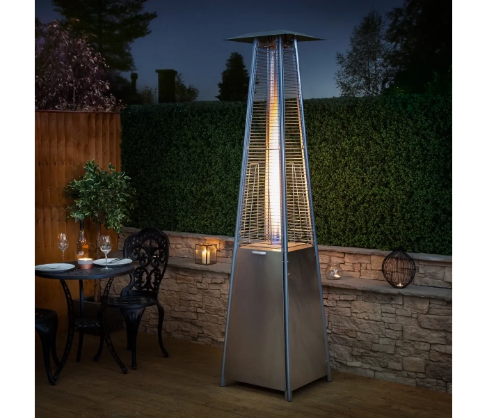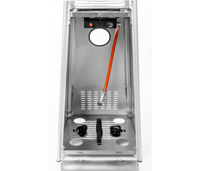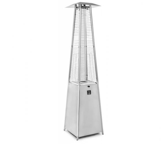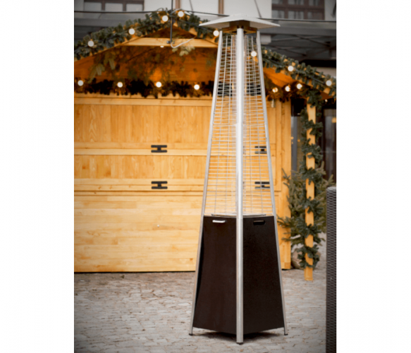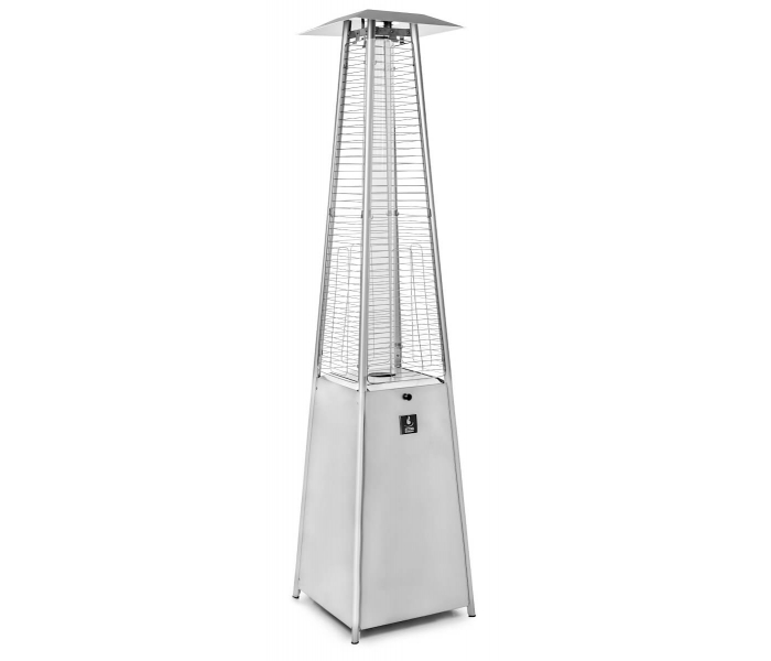 Газова колонка Activa PIRAMIDA CHEOPSA Inox - осінні вечори в саду або на терасі не обов'язково асоціюються з холодом. Сучасна опалювальна парасолька CHEOPS PYRAMID забезпечує потрібну температуру і дозволяє використовувати відкриті приміщення навіть у міжсезоння. Газовий обігрівач підвищить температуру навколишнього середовища для комфортного проведення часу в саду або на терасі. Він рівномірно розподіляє тепло навколо власної осі. Виглядає естетично, в процесі роботи створює неповторний ефект «живого вогню» в скляній трубці. Парасолька з підігрівом проста у використанні - все, що вам потрібно, це ручка та іскровий запал. Він працює від газового балона, який можна легко придбати (наприклад, на будь-якій заправці) і замінити. У комплект завжди входить газовий редуктор і шланг. Редуктор має з'єднання для великого газового балона вагою 11 кг (ключ на 27 мм) з різьбовим входом 21,8 л.