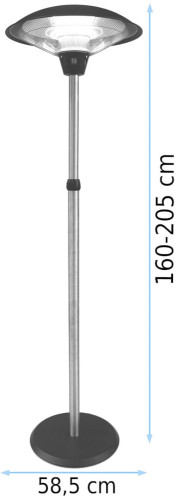 Вуличний електричний обігрівач Focus Garden DORADO Black - окремо стоячий електричний обігрівач Dorado ідеально підходить для саду, тераси, патіо та садів громадського харчування. Він використовує інфрачервоне світло, яке не нагріває повітря і діє безпосередньо на тіло людини. Це робить його придатним навіть для відкритих приміщень і таким ефективним способом обігріву. Він має окремо стоячу форму, що нагадує класичний вуличний ліхтар або стильний світильник, тому його можна використовувати будь-де. Інфрачервоний обігрівач Dorado відрізняється високою потужністю і трьома налаштуваннями, які дозволяють налаштувати його під поточні потреби. Він має елегантний, стильний зовнішній вигляд, тому може бути не тільки практичним елементом облаштування даного приміщення, але і його прикрасою. Він ідеально підходить для ресторанного саду, відкритого внутрішнього дворика, а також для домашньої тераси. Його також можна використовувати на відкритих просторах - наприклад, під час вечірок у саду або різноманітних заходів просто неба. Практичний садовий обігрівач виготовлений з високоякісних матеріалів. У ньому використовуються галогенні радіатори з тривалим терміном служби. Він міцний і міцний, а також стійкий до погодних умов (IP55). Це робить його справді універсальним.