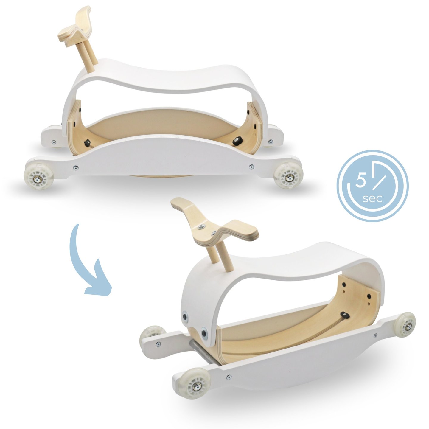 Деревянный велобег-качалка Mamabrum 2в1 – этот инновационный детский автомобиль-каталка создан для того, чтобы обеспечить массу развлечений и развить навыки вашего малыша! Он обеспечивает большую дозу вызова и веселья. Столбы можно поворачивать без использования инструментов, поэтому аттракцион можно легко превратить в кресло-качалку. Прекрасный способ расслабиться для вашего малыша! Отличается своим эстетическим и простым стилем, который базируется на новозеландском дизайне. Он изготовлен из высококачественной древесины, что гарантирует долговечность и прочность изделия. Яркие цвета, использованные в транспортном средстве позволят ему вписаться в любой интерьер.