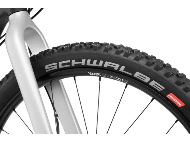 - Качественные покрышки: широкие и цепкие шины Schwalbe Rocket Ron со специальным резиновым компаундом ADDIX SPEED обеспечивают отличный зацеп на почве и низкое сопротивление качению.