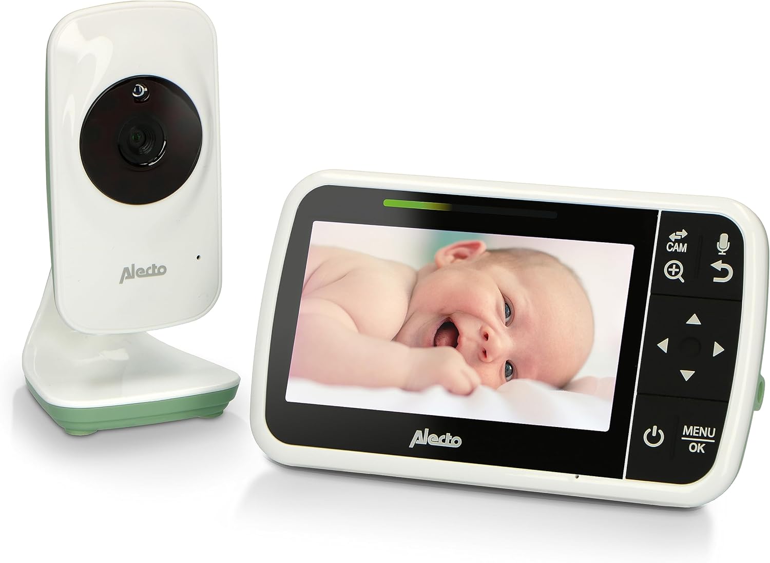 Видеоняня ALECTO DVM149GN - с видеоняней DVM149GN от Alecto Baby вы всегда будете пристально следить за своим ребенком. Эта видеоняня состоит из камеры и большого 4,3-дюймового экрана, имеет энергосберегающий режим Full Eco и поставляется в белом/мятно-зеленом цветах. Радионяня с камерой от Alecto Baby – это идеальное решение для молодых родителей! Вы всегда слышите и видите своего ребенка благодаря безопасному соединению. Поэтому вам не придется постоянно проверять, все ли идет хорошо – радионяня сделает это за вас! Она также имеет очень хорошее качество звука и кристально чистое цветное изображение, как днем, так и ночью. Вы можете расширить видеоняню Alecto Baby DVM149GN до четырех камер (DVM149C). Это идеальный вариант, если у вас несколько детей, ведь таким образом вы всегда сможете видеть и слышать своих детей через перезаряжаемый родительский блок (его хватает на 10 часов). Камеры регулируются вручную. Кроме того, эта удобная радионяня с камерой позволяет легко разговаривать с детьми с помощью функции обратной связи. Почитайте сказку, пока вы на работе, спойте песенку, если малыш не засыпает, или включите одну из 8 колыбельных и/или естественных звуков. С помощью монтажного материала, входящего в комплект, вы можете легко установить камеру в любом месте, чтобы иметь идеальный обзор вашего малыша. Нужно заняться делами в саду, пока ваш ребенок спит? Не волнуйтесь, ведь удобная видеоняня Alecto Baby DVM149GN с камерой обеспечивает большой радиус действия – до 300 метров на улице. Большой 4,3-дюймовый экран позволяет легко считывать температуру, чтобы вы знали, не перегрелся ли или переохладился ваш ребенок. Изображение и звук включаются автоматически при появлении шума, и индикаторы уровня звука показывают, насколько сильно шумит ваш ребенок. Таким образом, вы всегда можете держать все под контролем. DVM149GN – это так называемая Full Eco радионяня. Это означает, что соединение между родительским и детским блоком происходит только при обнаружении звука. Традиционные радионяни часто имеют либо непрерывное, либо прерывистое соединение, что автоматически приводит к большему потреблению энергии. С этой удобной радионяней с камерой Alecto Baby вы выбираете высокое качество по привлекательной цене!